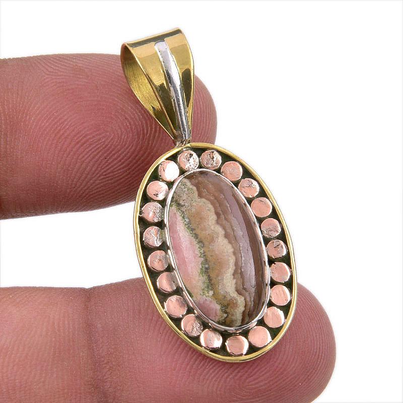 Подарочный двухцветный кулон из стерлингового серебра 925 пробы с натуральным медовым родохрозитом 1,50 дюйма l2L93