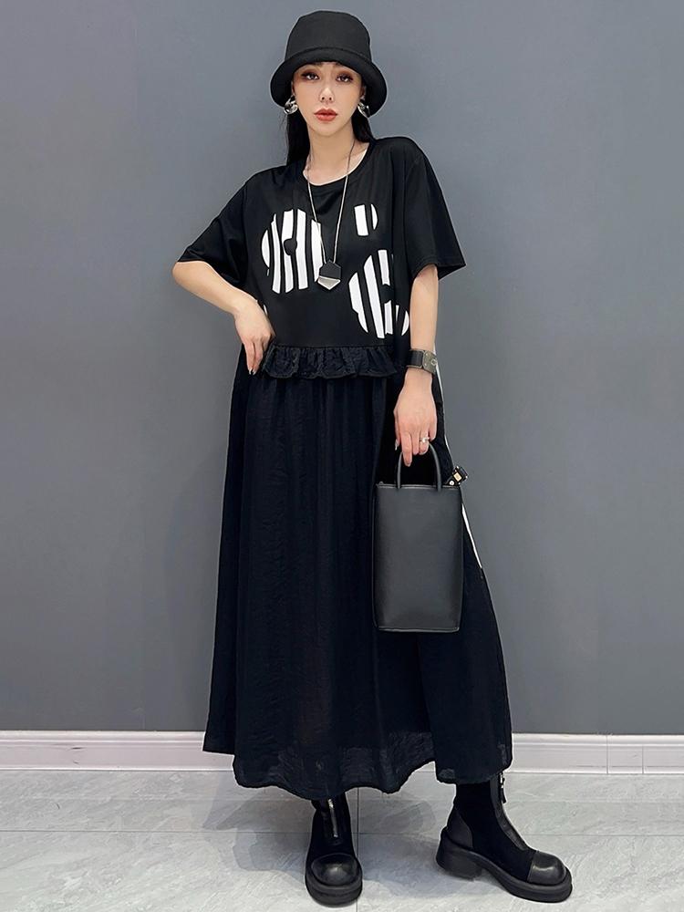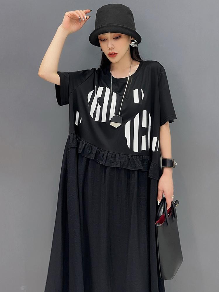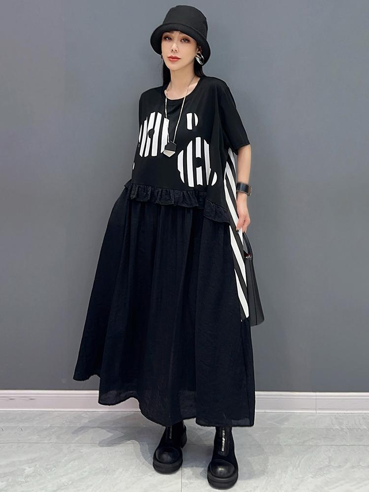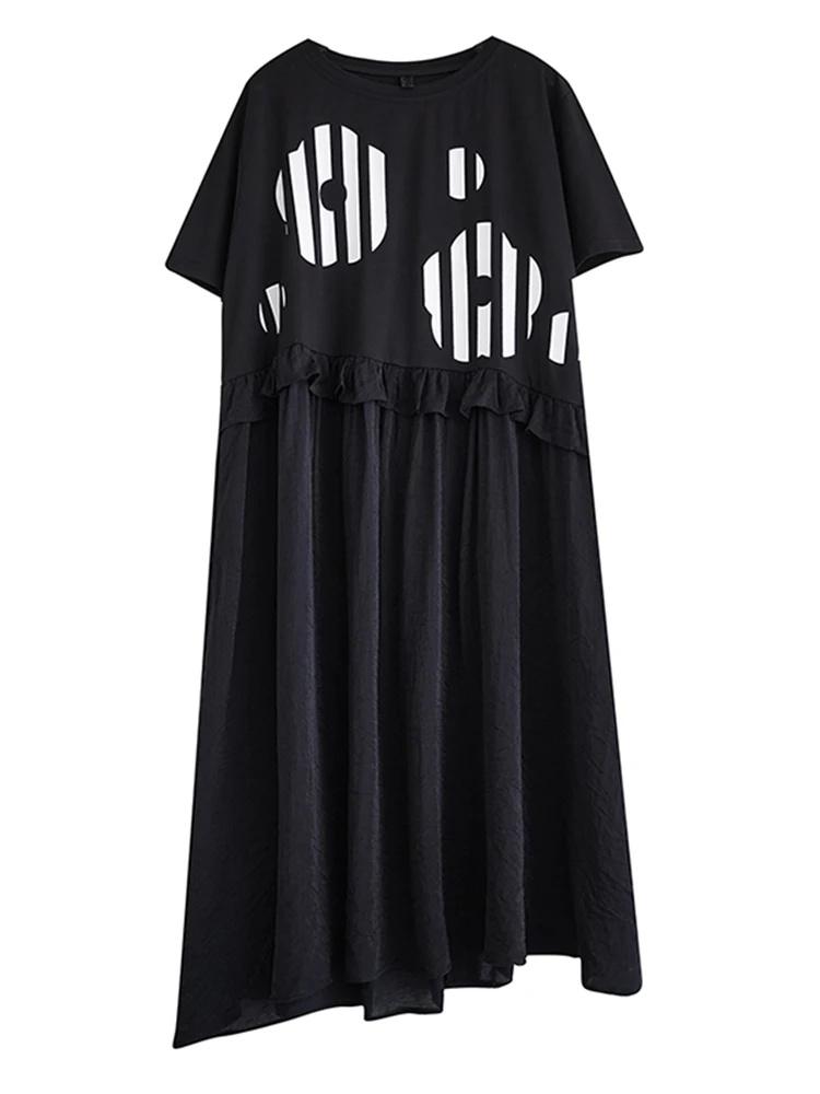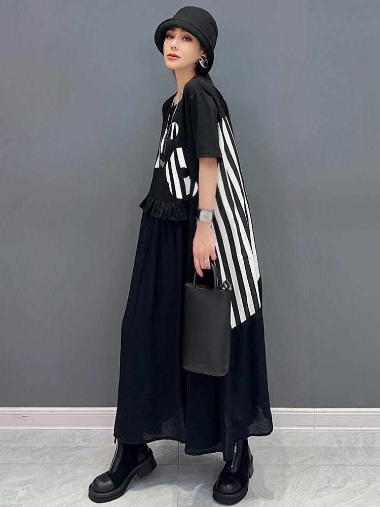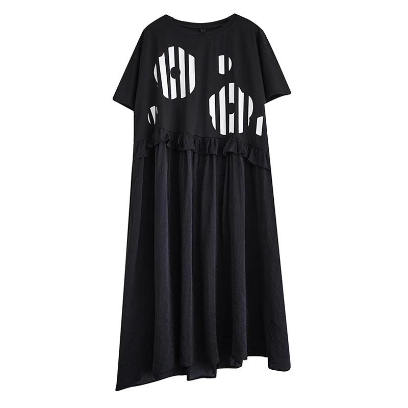 Xitao Свободное лоскутное полосатое платье с принтом и оборками, повседневное новое женское платье ZY8730