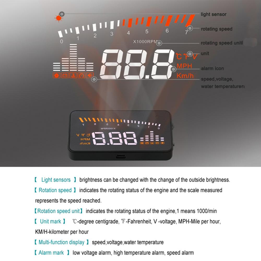 Этот HUD может отображать много полезной информации и позволяет вам испытать скорость, а также обеспечить безопасность вождения и удовольствие от вождения.. И он принимает новейшие стабильные интегральные схемы, все индексы соответствуют стандартам. А наш HUD имеет уникальную и элегантную форму, плавные линии, тонкий корпус.