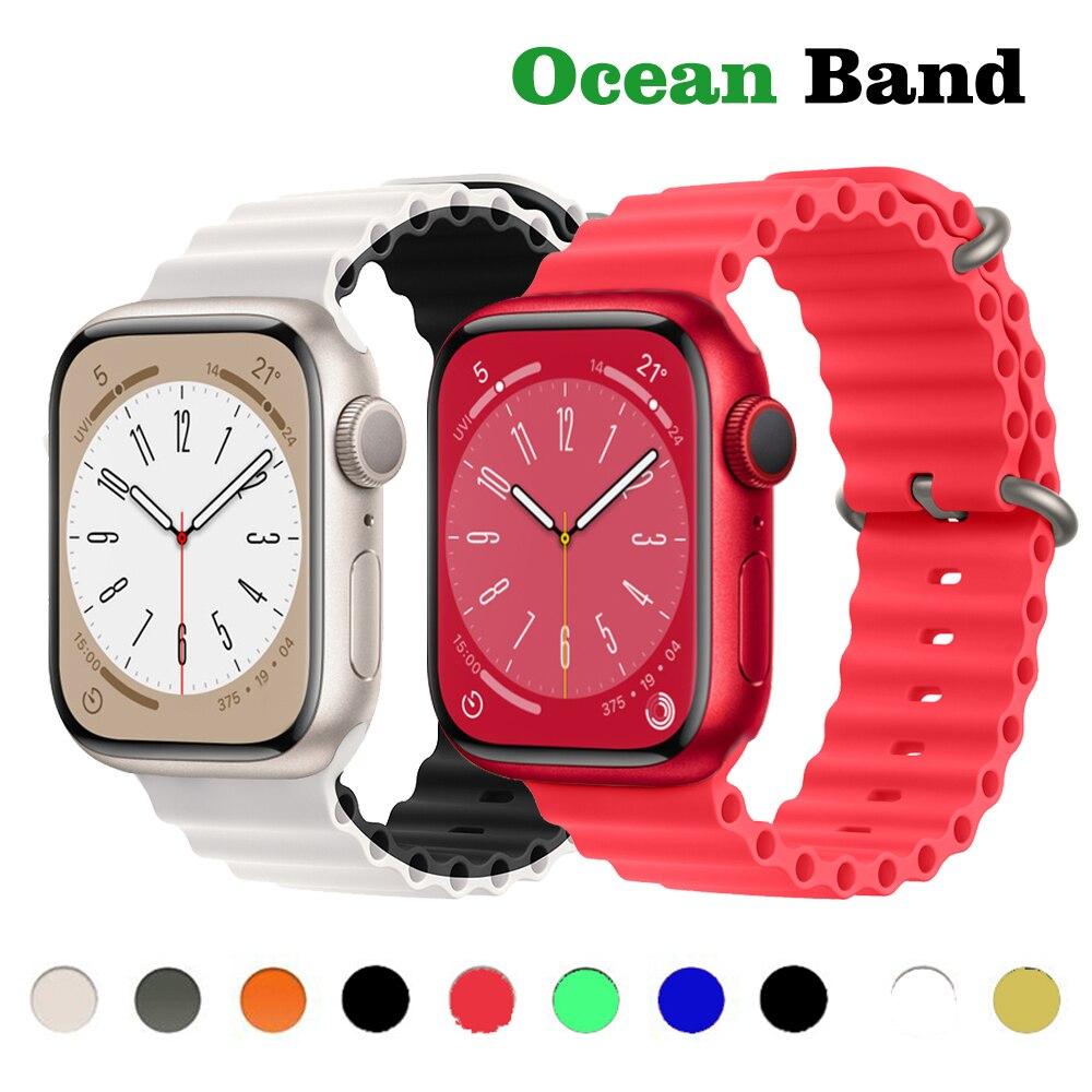 Ремешок Ocean для Apple, ремешок для часов Ultra, 49 мм, 45 мм, 41 мм, 44 мм, 40 мм, 42 мм, 38 мм, силиконовый браслет iWatch Ultra series 9, 8, 7, 6, 5, 4, 3, 2, 1 se