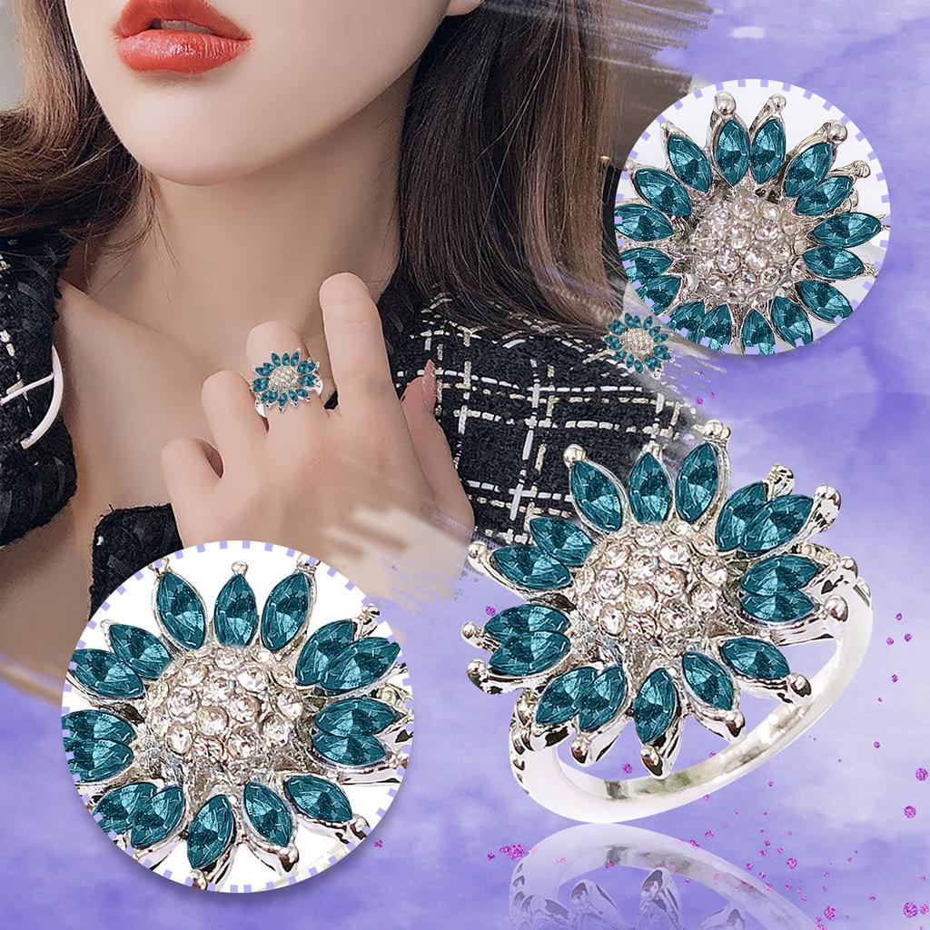 Кольца с покрытием в форме подсолнечника Цветочные кольца Кольцо с синим цирконом для женщин и девочек — купить товар онлайн с бесплатной доставкой по всему миру!