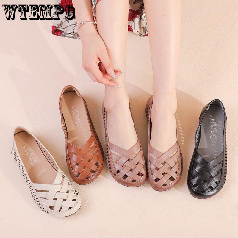 Женская однотонная обувь из мягкой кожи, летние женские удобные нескользящие туфли на плоской подошве, полые сандалии на плоском каблуке. — купить товар онлайн с бесплатной доставкой до всему миру!
