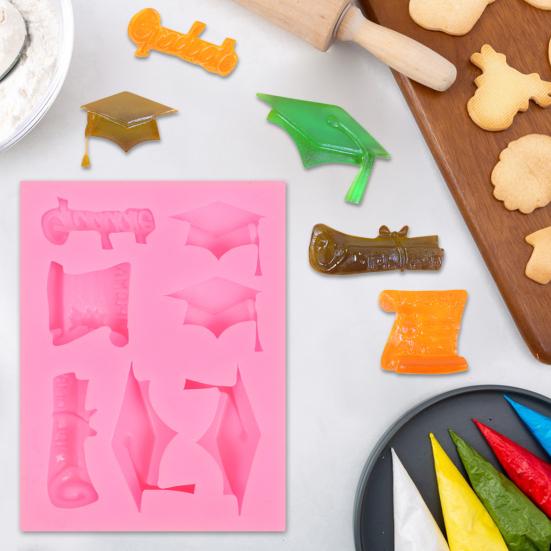 Легкая выпускная выпечка: Упростите процесс выпечки с помощью этой выпускной силиконовой формы.. Идеально подходит для создания детализированных и веселых трафаретов на выпускную тематику, которые улучшат ваши украшения и развлечения во время выпускных торжеств.