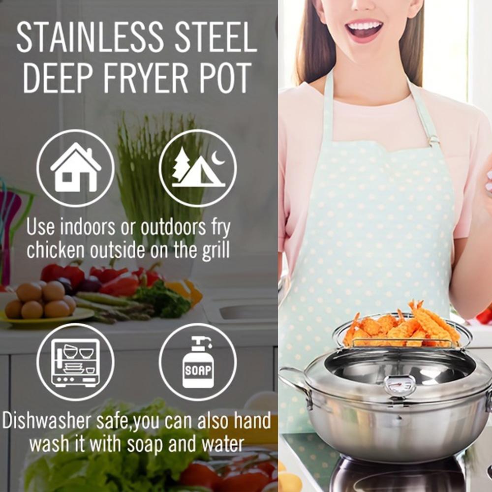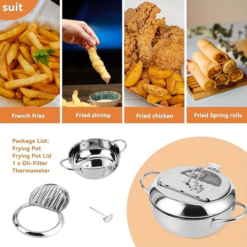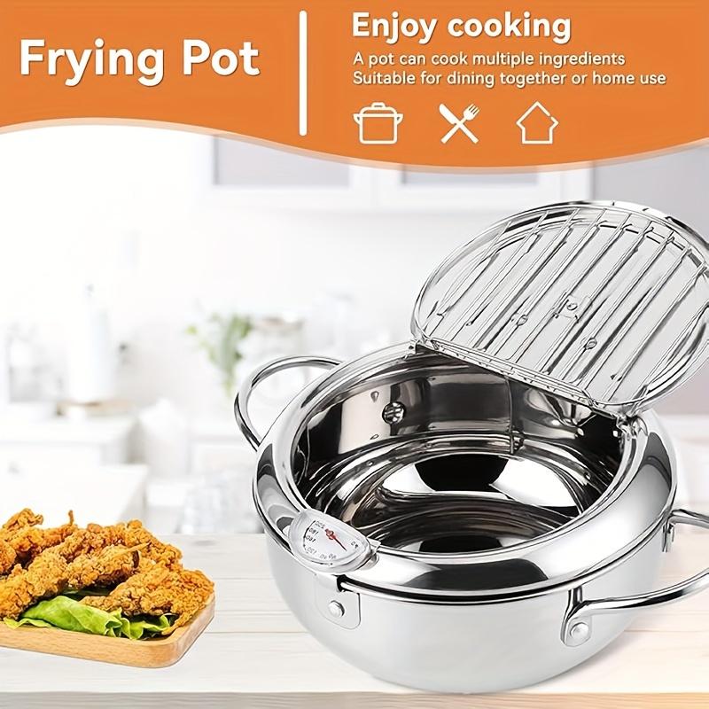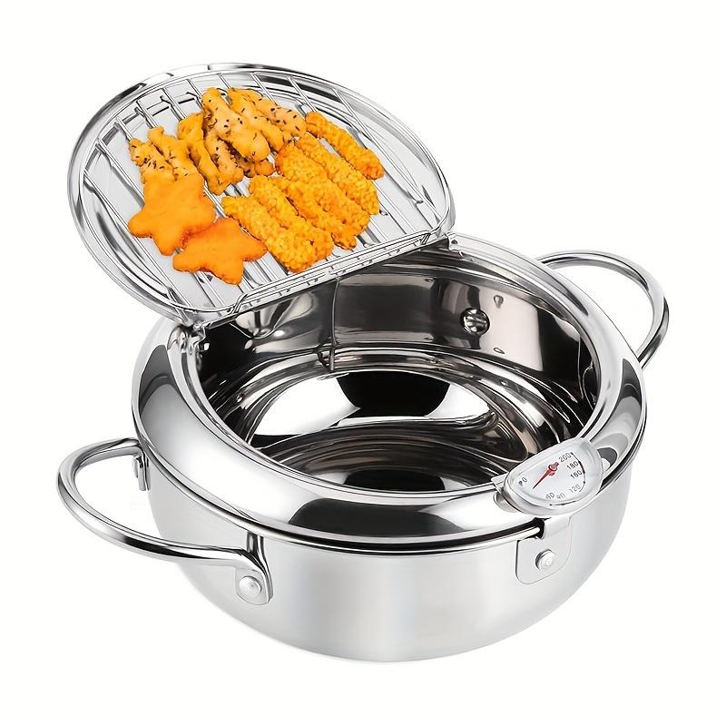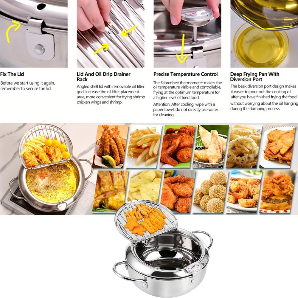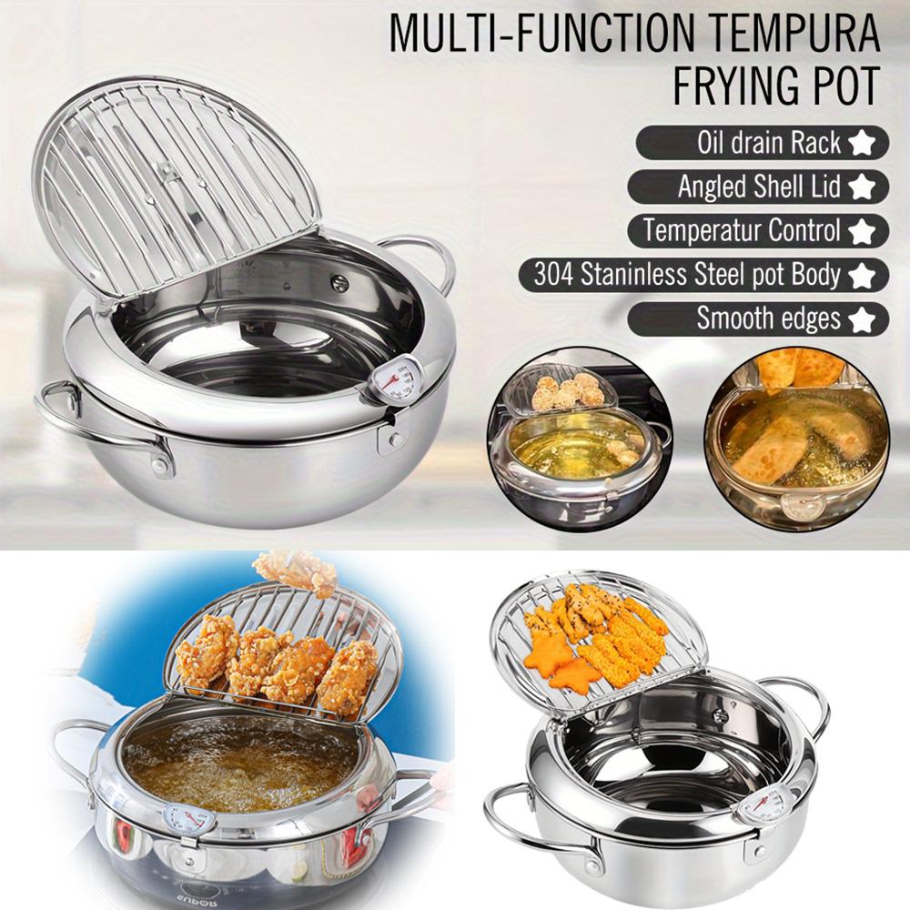 Фритюрница из нержавеющей стали с термометром и съемной решеткой, сковорода темпура в японском стиле с ручкой холодного прикосновения для плиты