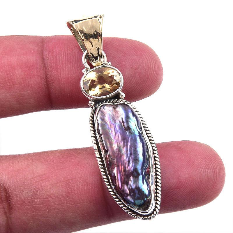 Ювелирная подвеска из натурального стерлингового серебра 925 пробы с жемчугом Бива и цитрином 2 дюйма h7u09 — купить товар онлайн с бесплатной доставкой по всему миру!