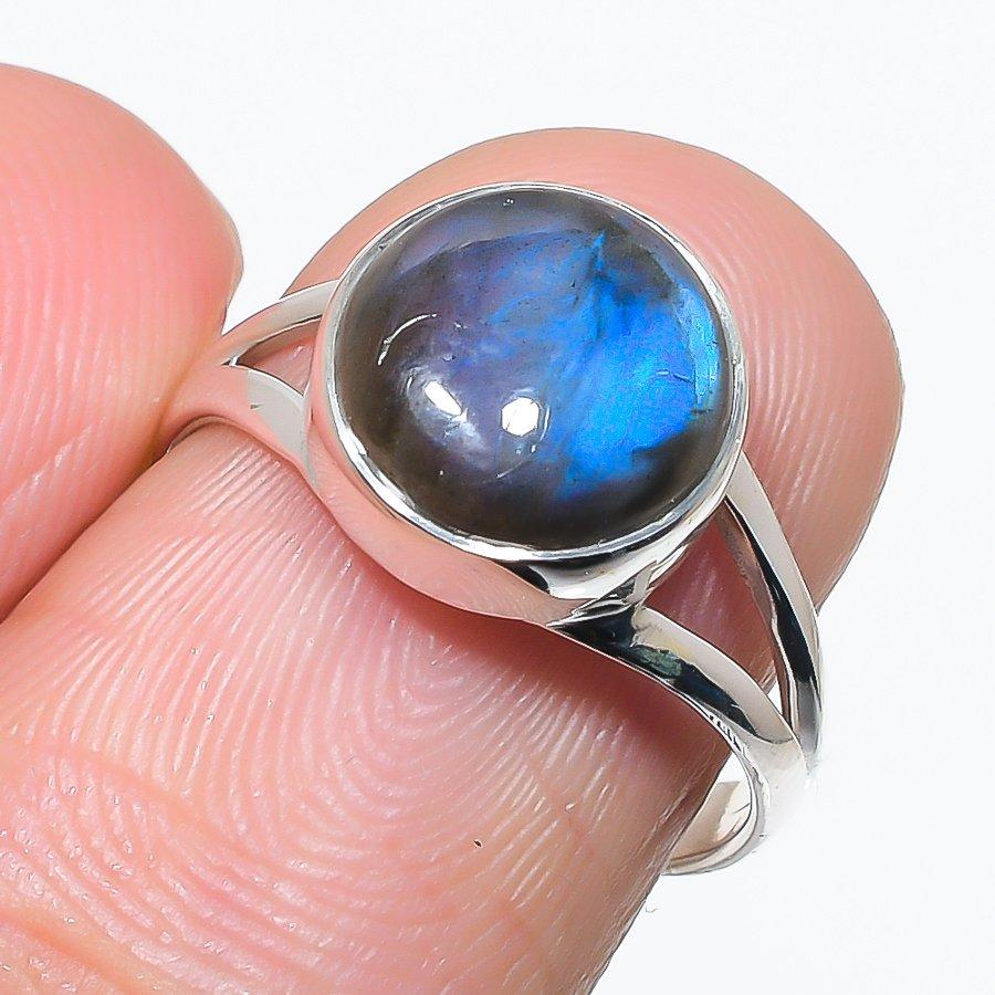 Ювелирное кольцо из натурального лабрадорита ручной работы из цельного серебра 925 пробы, размер 7 P3C74