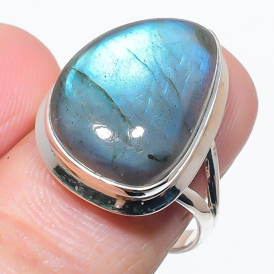 Ювелирное кольцо из натурального лабрадорита ручной работы из цельного серебра 925 пробы, размер 8 c1S10 — купить товар онлайн с бесплатной доставкой по всему миру!