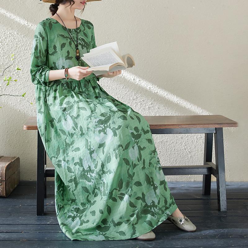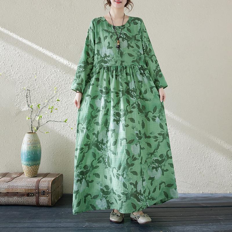 Весеннее новое винтажное длинное платье в литературном праздничном стиле для путешествий с круглым вырезом и принтом, платье большого размера