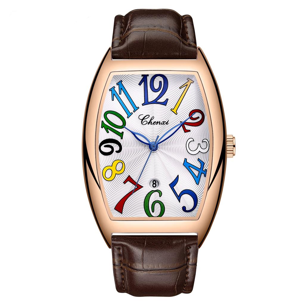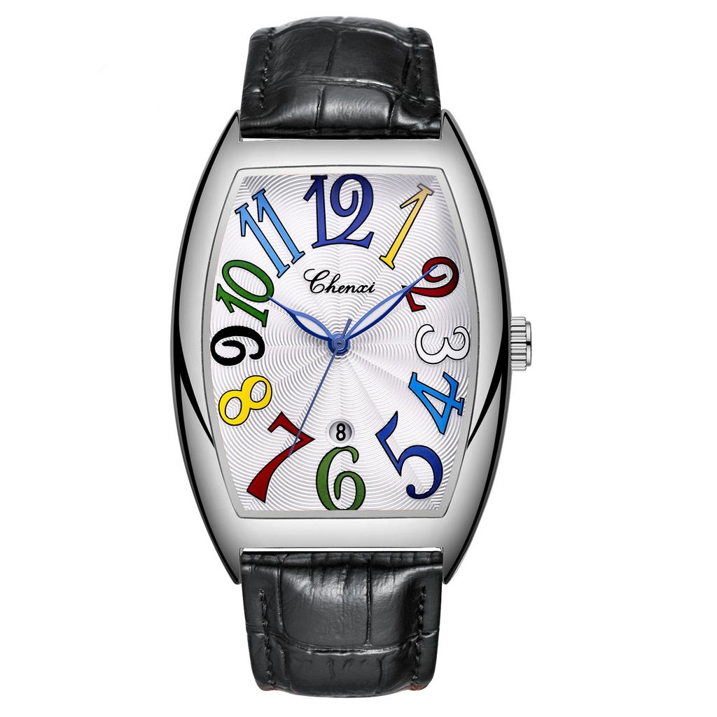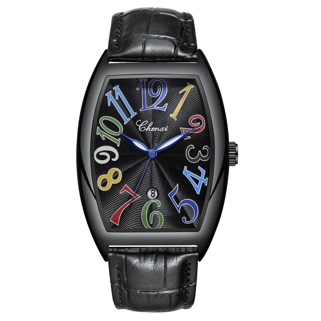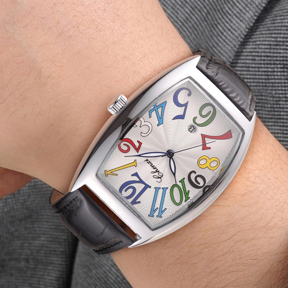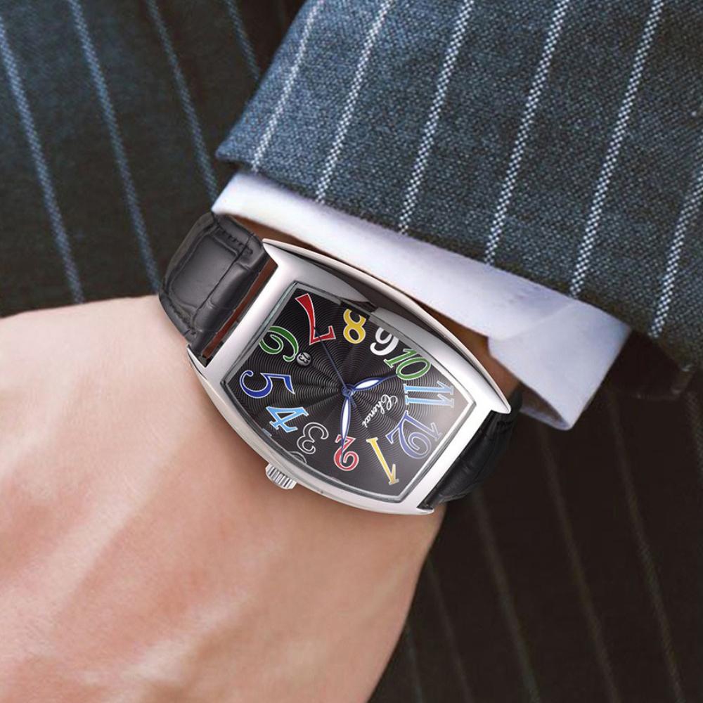 Стильные мужские часы Tonneau с кожаным ремешком и кварцевыми наручными часами для мужчин