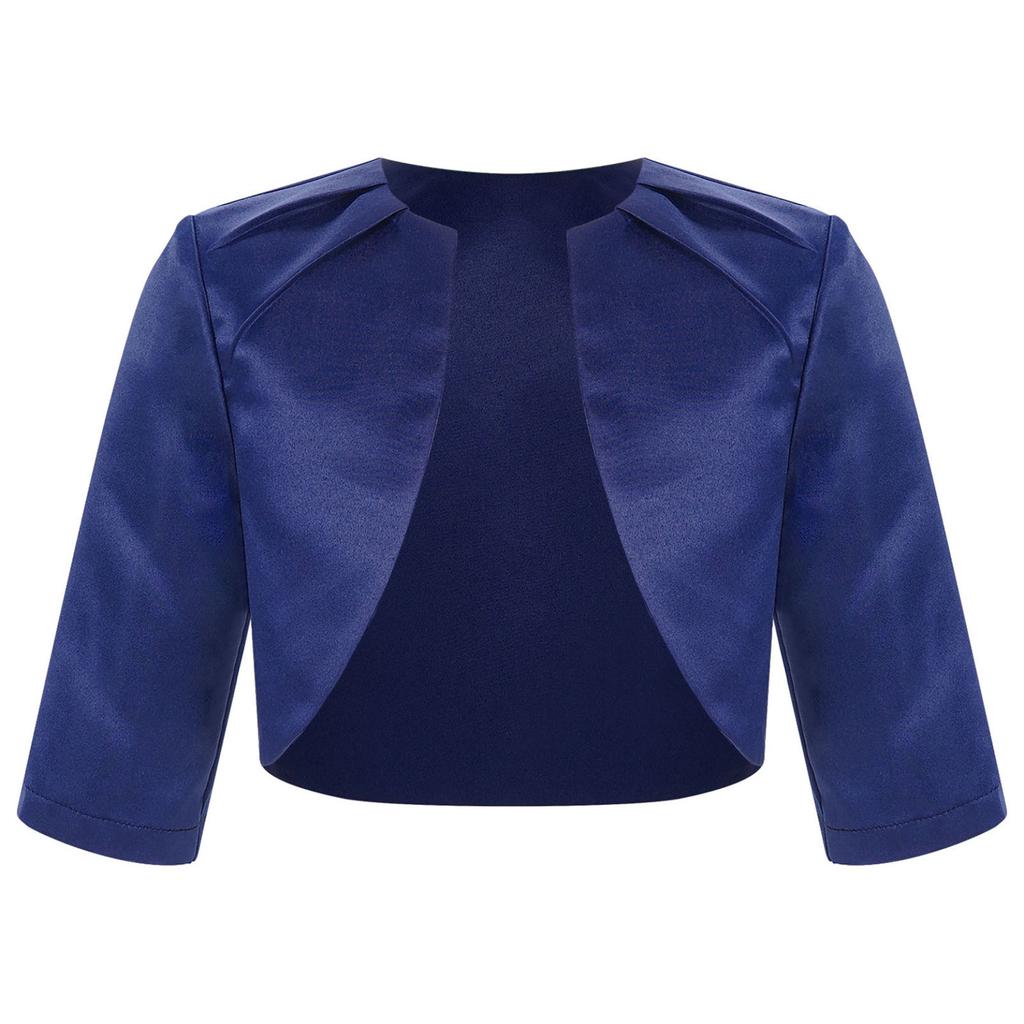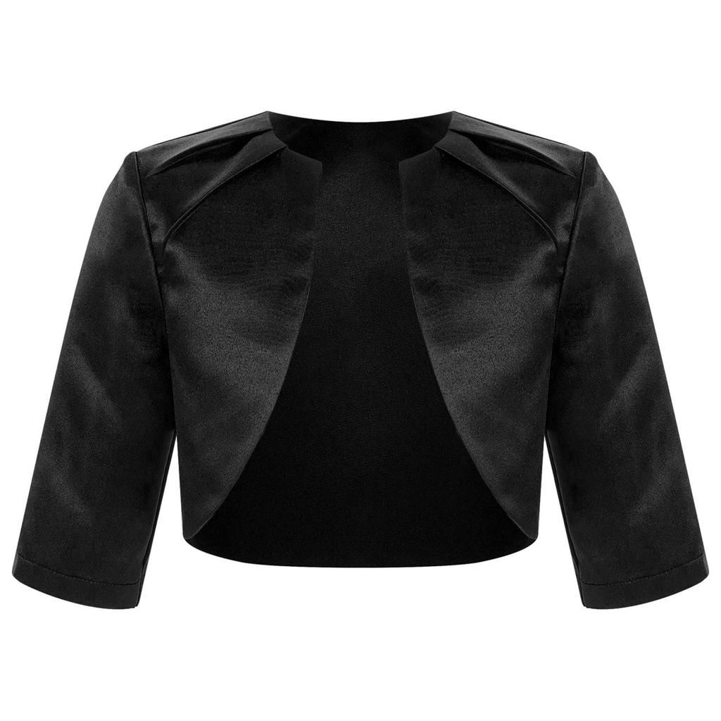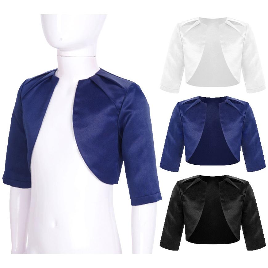Однотонный атласный кардиган для девочек, элегантное праздничное болеро с рукавами 3/4, верхняя одежда с шалью для вечера, выпускного вечера, свадьбы, дня рождения
