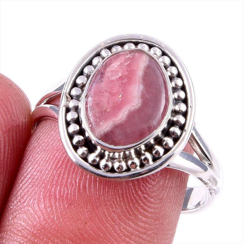 Ювелирное кольцо из стерлингового серебра 925 пробы с натуральным родохрозитом S.8 w6M84