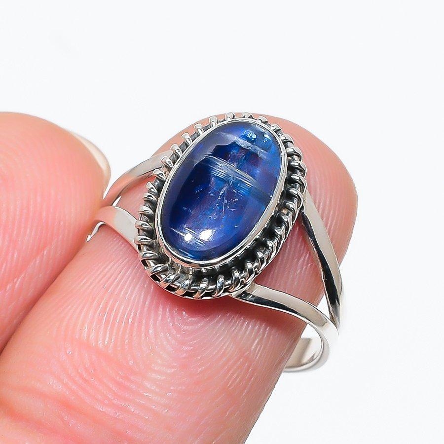 Подарочное кольцо из чистого серебра 925 пробы с натуральным кианитом ручной работы S.9 H5Z41