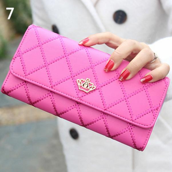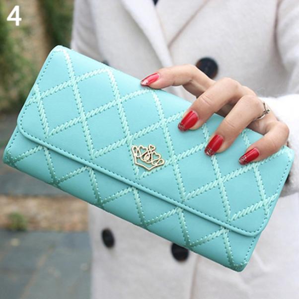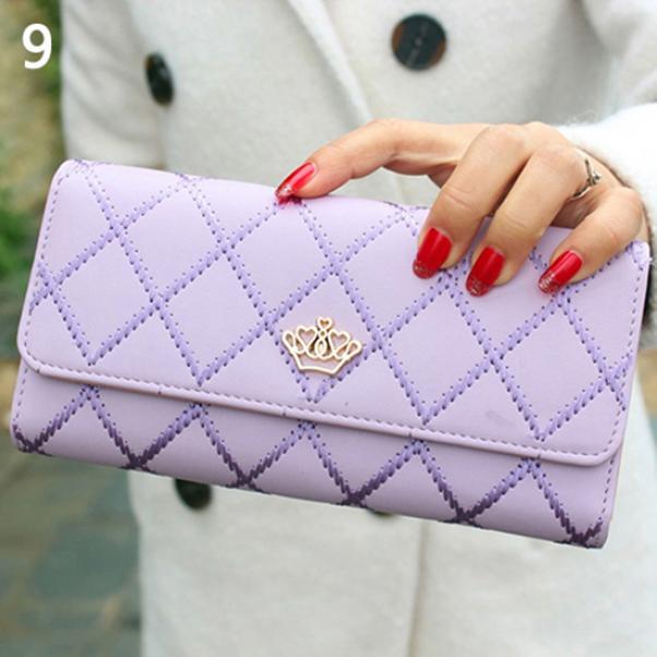 Новый женский стеганый клатч с короной, длинный кошелек из искусственной кожи, кошелек, сумка для карт