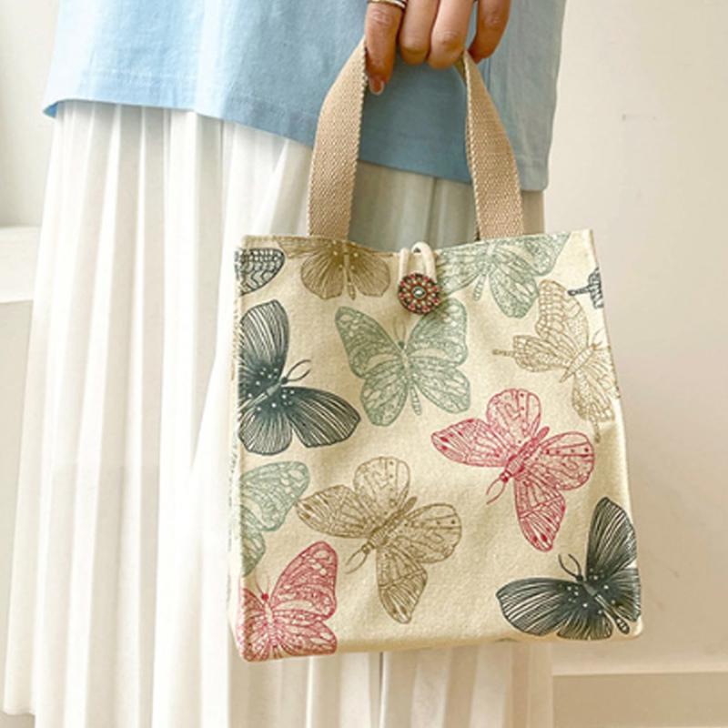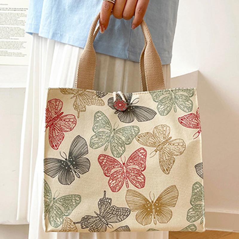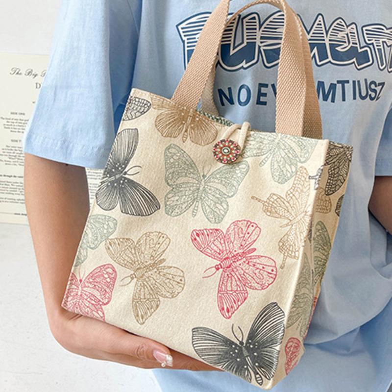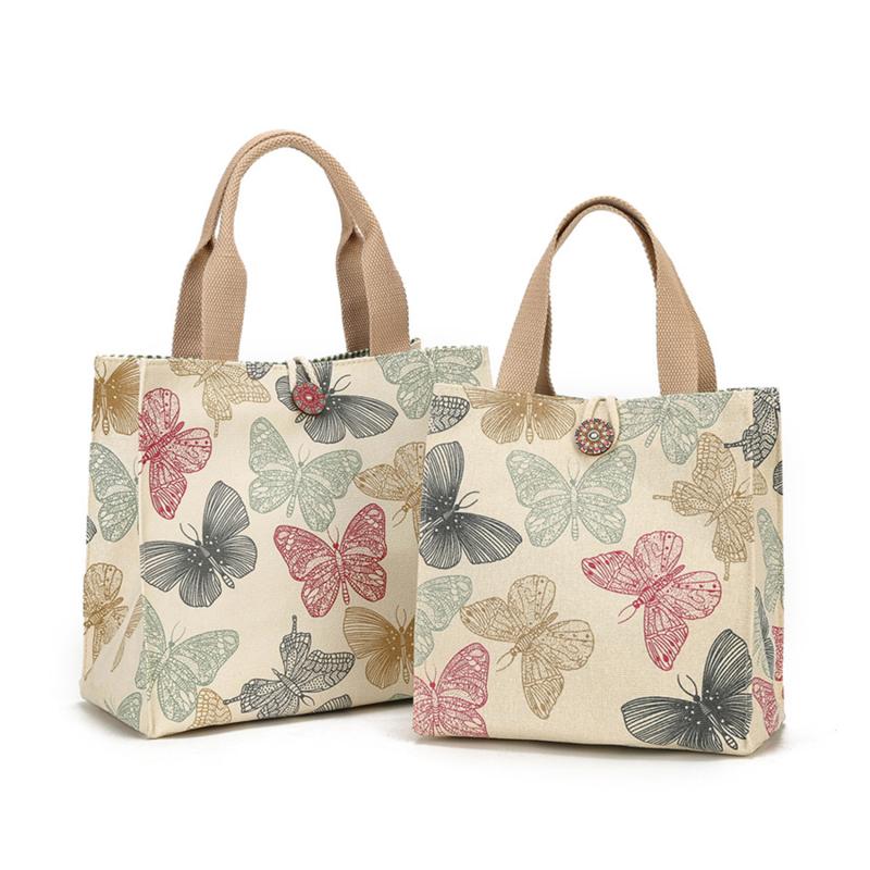 Сумка для обеда с принтом бабочки для женщин Girla, большие вместительные рабочие сумки-контейнеры для еды, портативные холщовые дорожные сумки для пикника и обеда