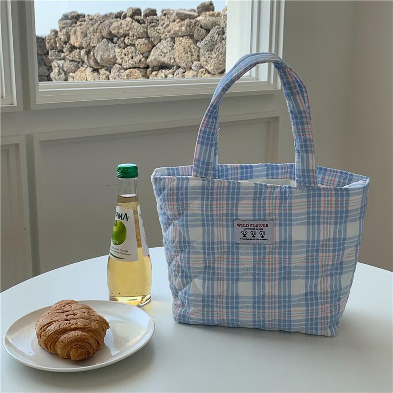 Сумка для обеда, стеганый дизайн, коробка для завтрака, клетчатый узор, сумка для пикника, эко-хлопчатобумажная ткань, маленькая сумочка, контейнер для ужина, сумки для хранения еды
