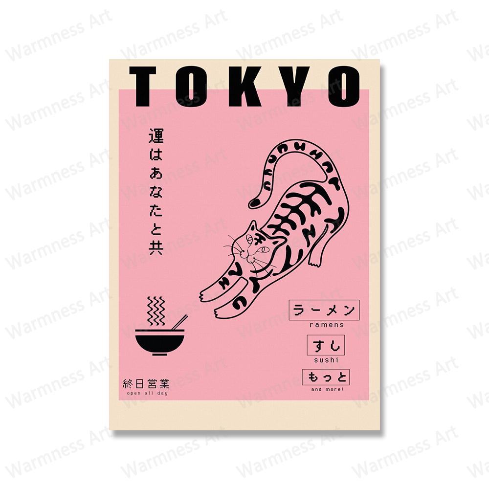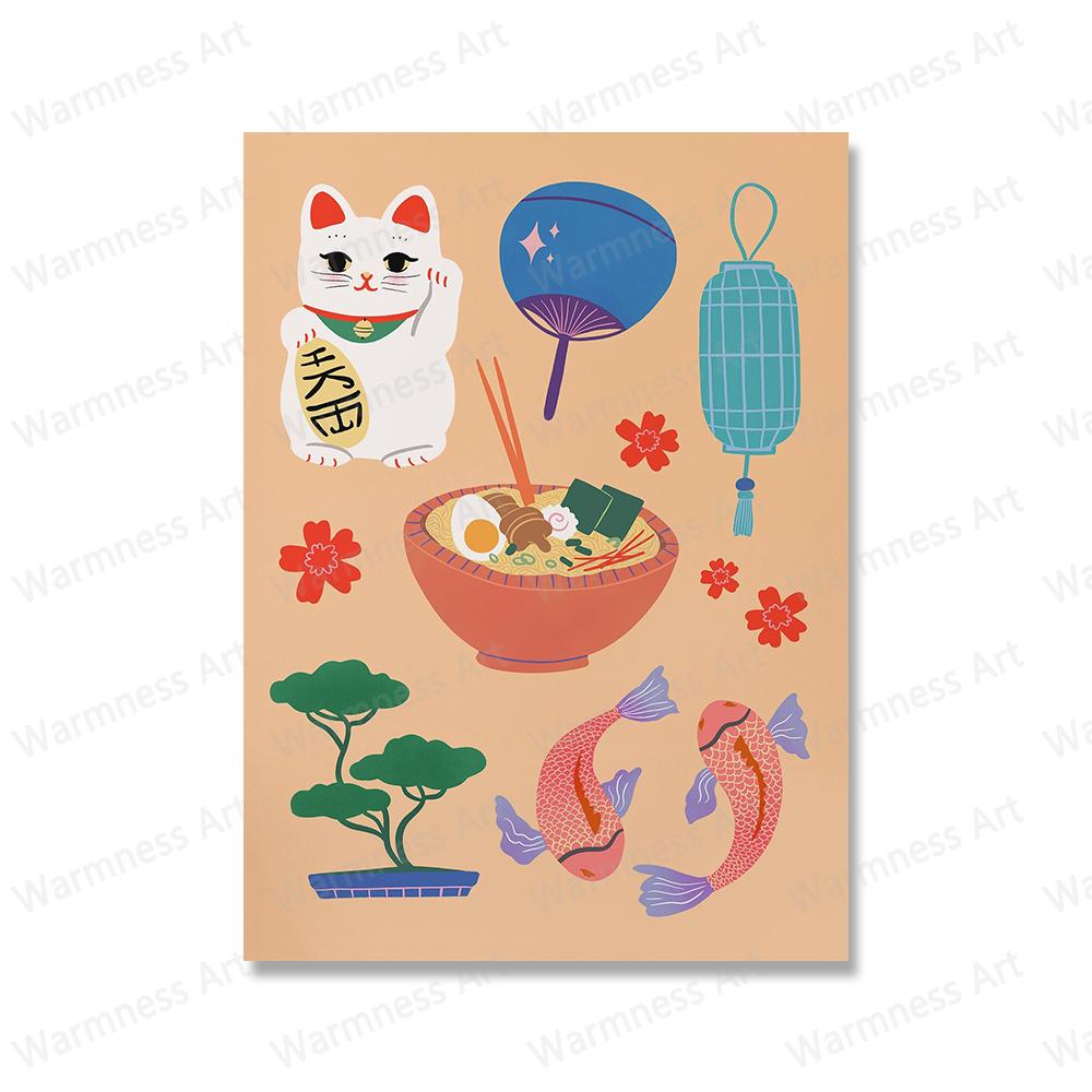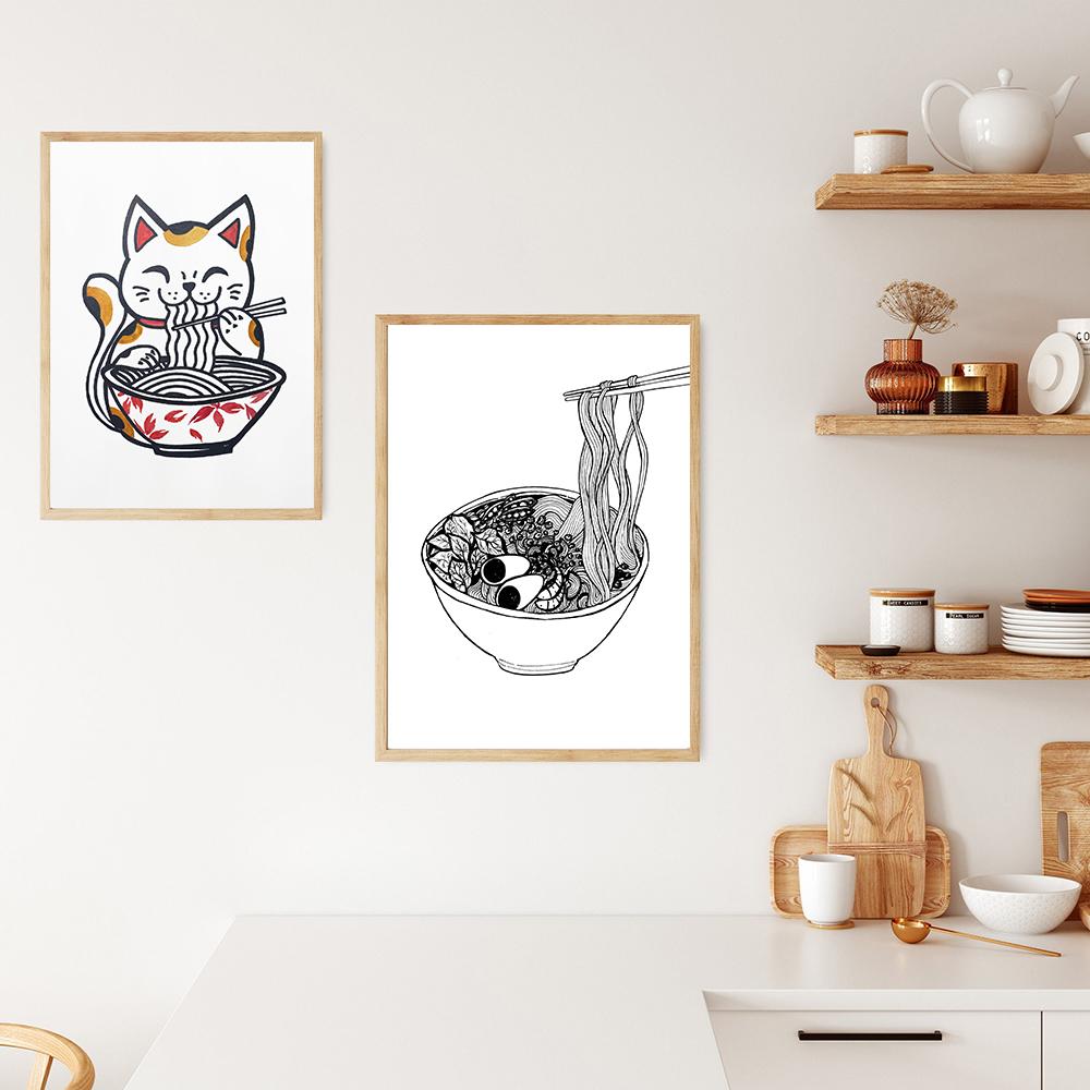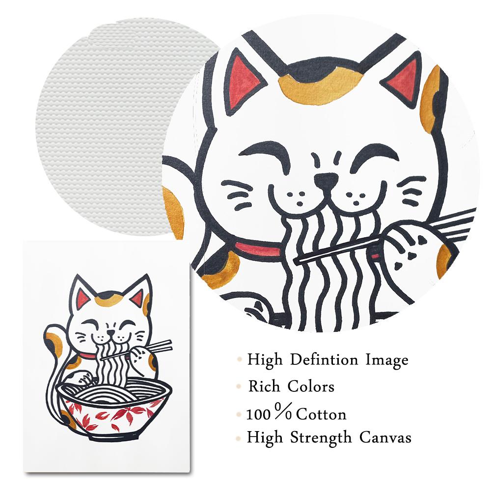 Японский рамэн, холст, картина, животные, счастливые кошки, постеры и принты, лапша, настенные панно с едой для детей, кухонная комната, домашний декор