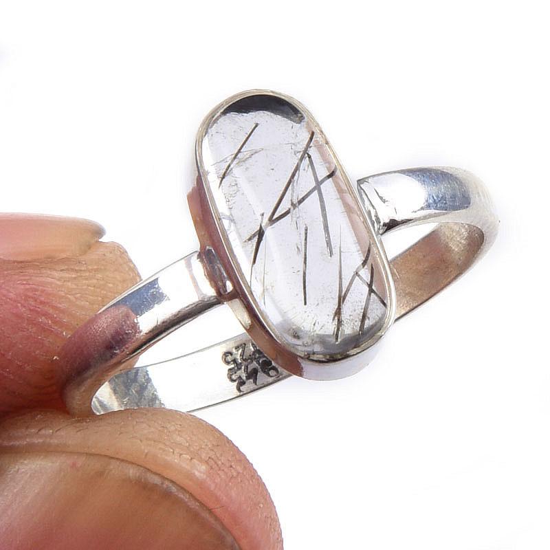 Кольцо из чистого серебра 925 пробы с натуральным черным рутилом ручной работы S.7 Y0r41