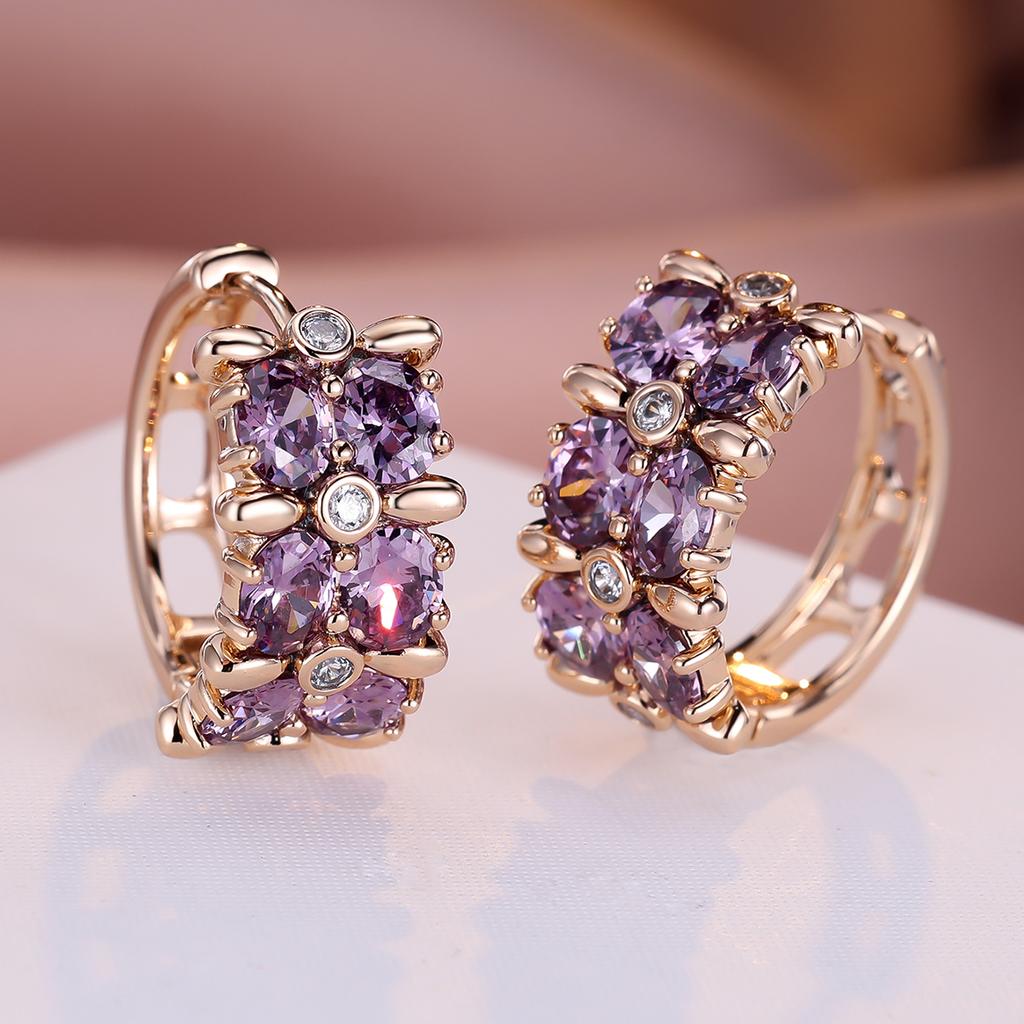 1 пара золотых серег принцессы овальной огранки с фиолетовым камнем, висячие серьги-крючки, свадебные украшения, подарки