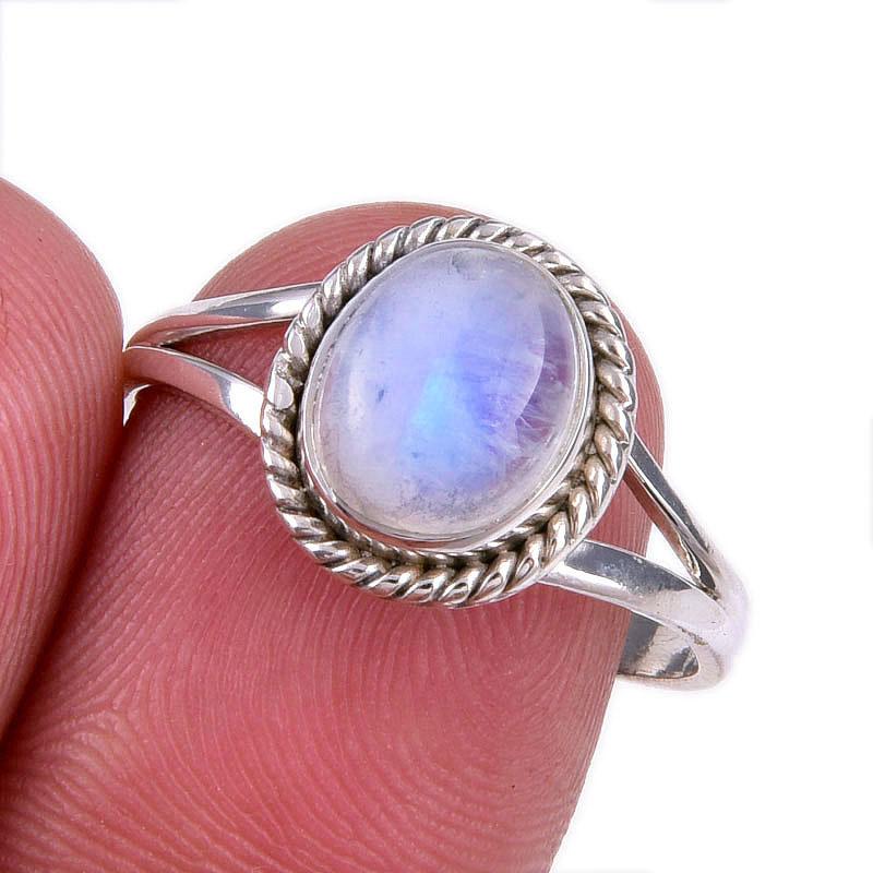 Подарочное кольцо из чистого серебра 925 пробы с натуральным радужным лунным камнем S.9 v6C71