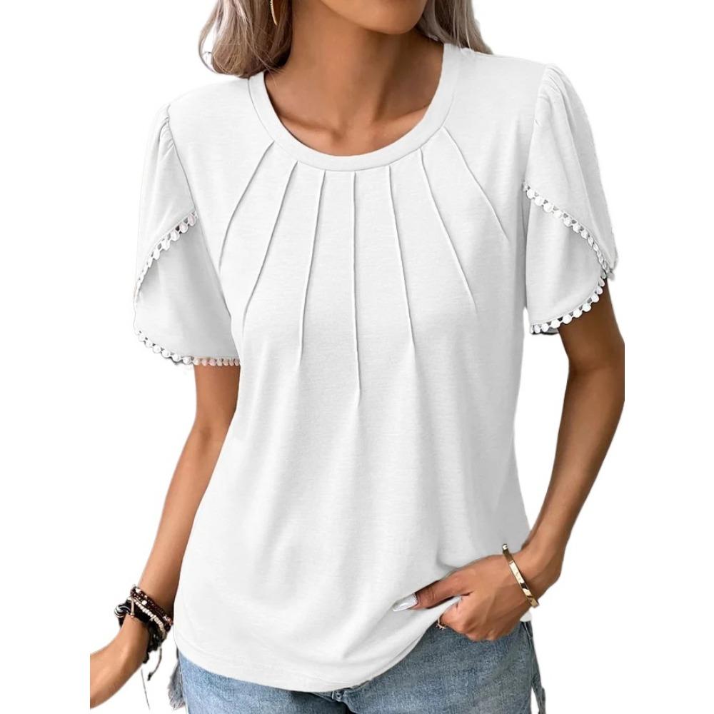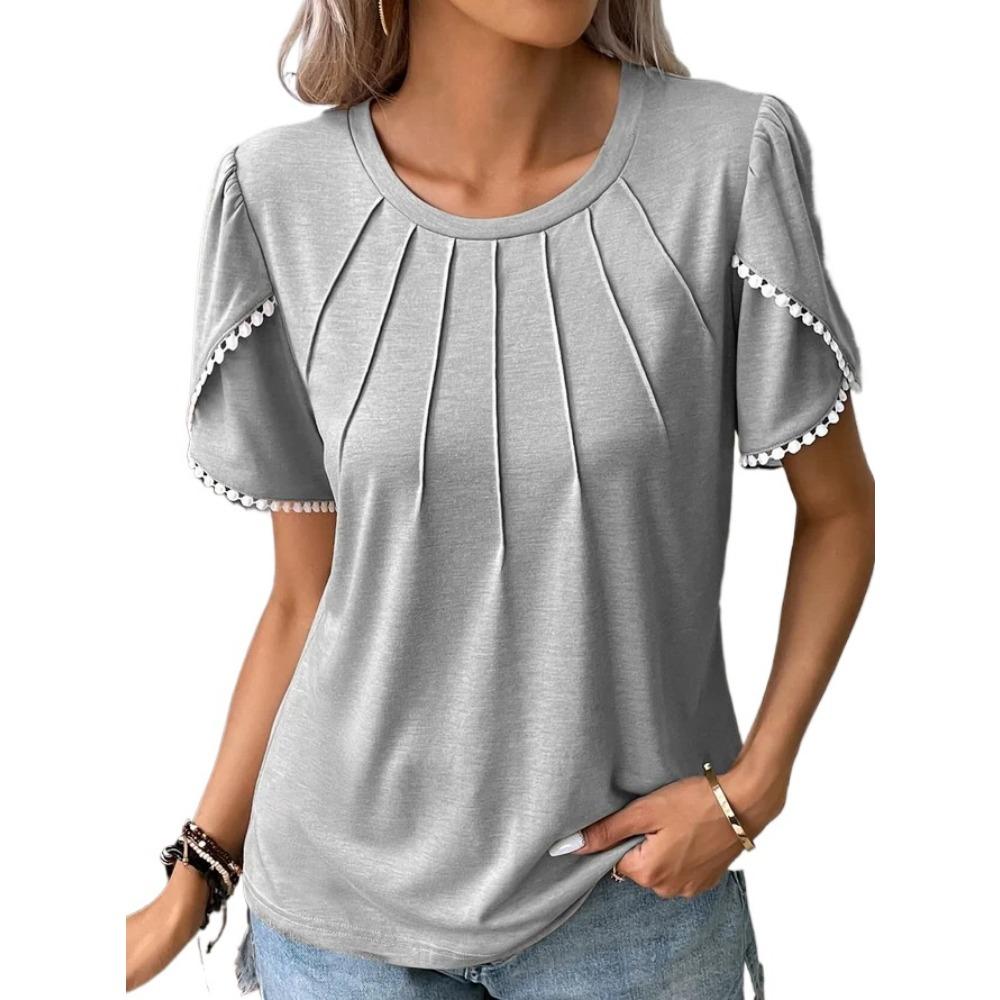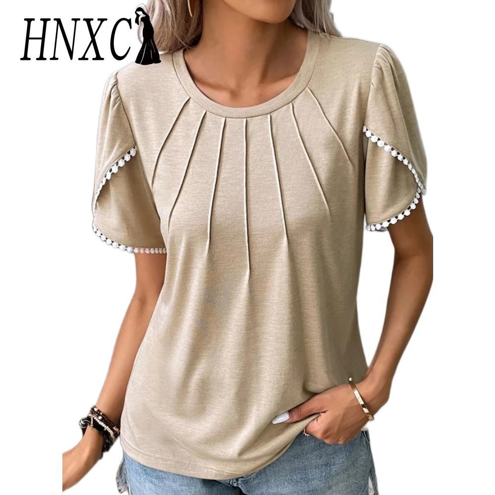 HNXC Женские модные повседневные летние однотонные блузки и рубашки с круглым вырезом и короткими рукавами с принтом