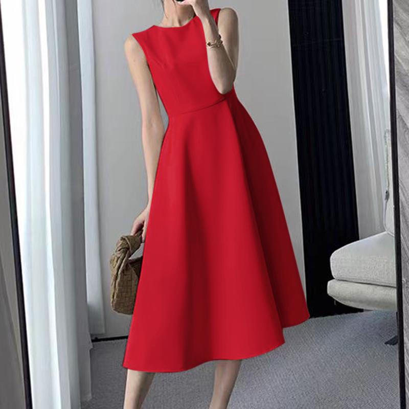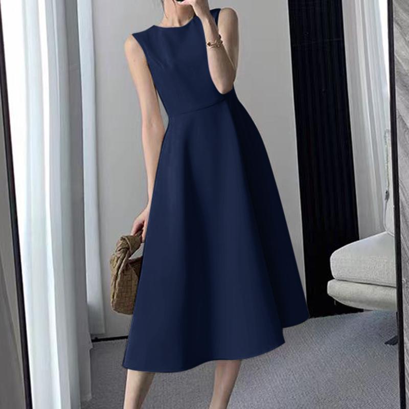 ZANZEA Женское летнее элегантное платье без рукавов с круглым вырезом и талией