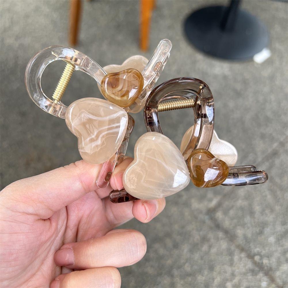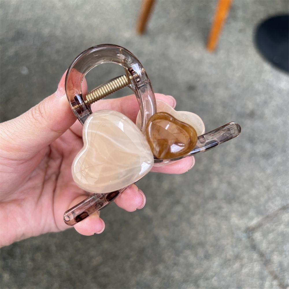 Модная заколка для волос в форме сердца ярких цветов, пластиковая заколка во французском стиле для женщин и девочек, челка для макияжа, хвост, булочка, коготь, подарок
