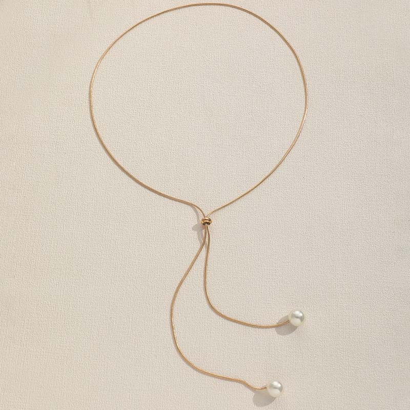Модное серебряное цветное длинное ожерелье с жемчужной подвеской и кисточкой для женщин, простая регулируемая цепочка на ключицы, колье, ювелирное изделие, подарок