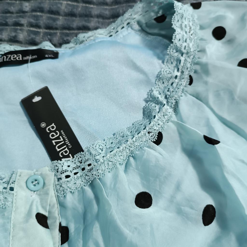 Синтетическая блузка от фирмы ZANZEA. Мне она не понравилась и вот почему: Вообще непонятно когда её носить. Из за материала в жару её не наденешь, да ещё и подкладка. Я пока померила вся взмокла, тело совсем не дышит. Но глубокое декольте не позволяет носить блузку и в прохладную погоду. К качеству пошива притензий нет. Но кружево смотрится дёшево. И пуговицы не очень. Материал красивый типа органзы, горошины похожи на бархатные. Носить скорее всего не буду(. Таблице размеров соответствует.