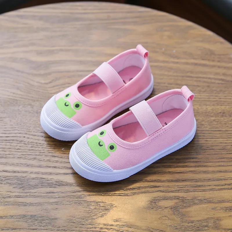 Весенне-летняя обувь для девочек, домашняя легкая парусиновая обувь на мягкой подошве, Нескользящие розовые повседневные туфли на плоской подошве для маленьких девочек с героями мультфильмов