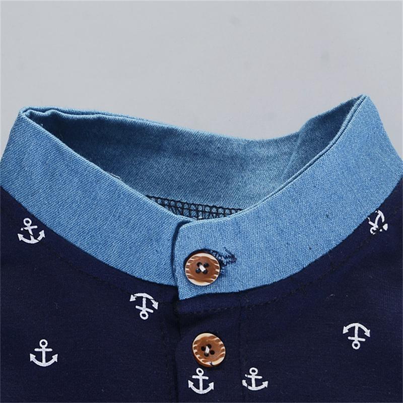 Комплект из 2 предметов для малышей, летняя мода, комплект с джинсовыми шортами с полным принтом и якорем, с короткими рукавами и воротником-стойкой