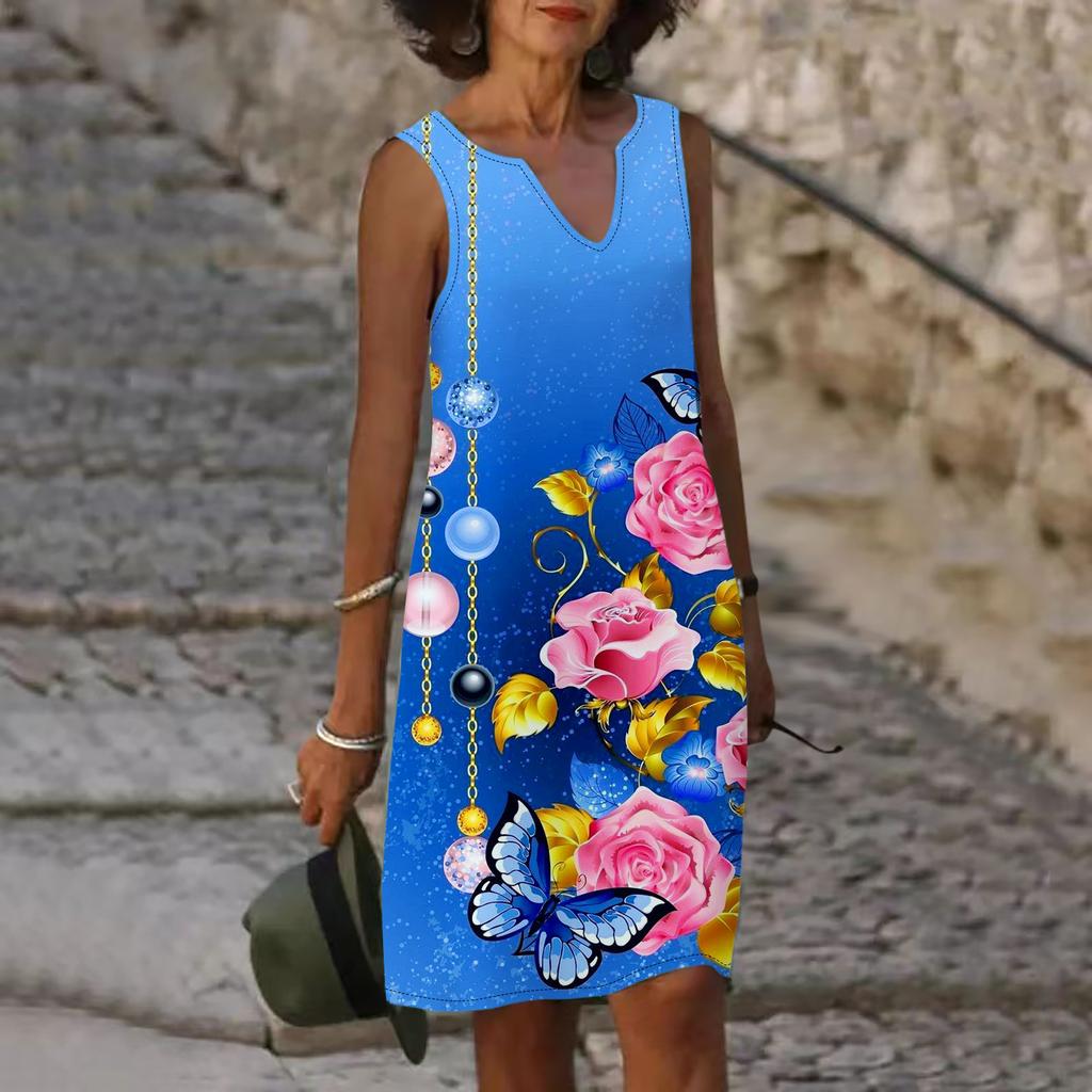 Женское летнее платье с v-образным вырезом и принтом розы и бабочки, повседневное модное платье без рукавов, повседневные свободные сексуальные платья размера плюс XS-8XL