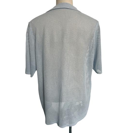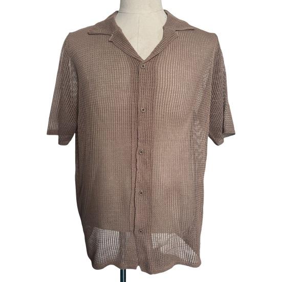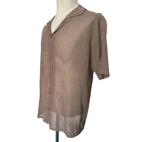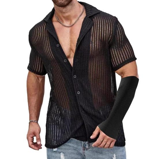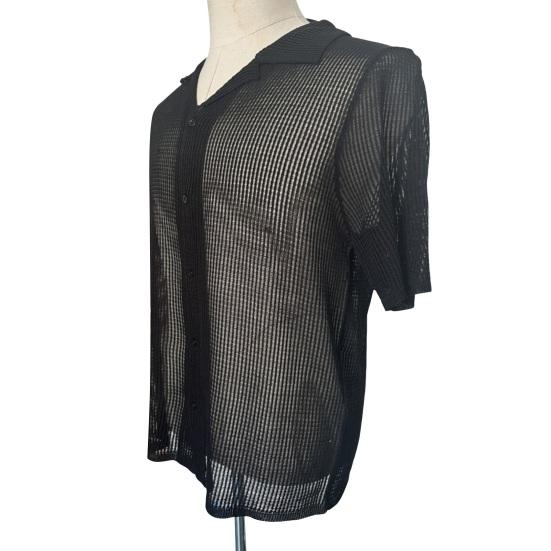 Поднимите свой стиль с этой мужской рубашкой, изготовленной из 100% полиэстера и обеспечивающей максимальный комфорт.. Свободный крой и однобортный дизайн лацканов подчеркивают повседневную элегантность..