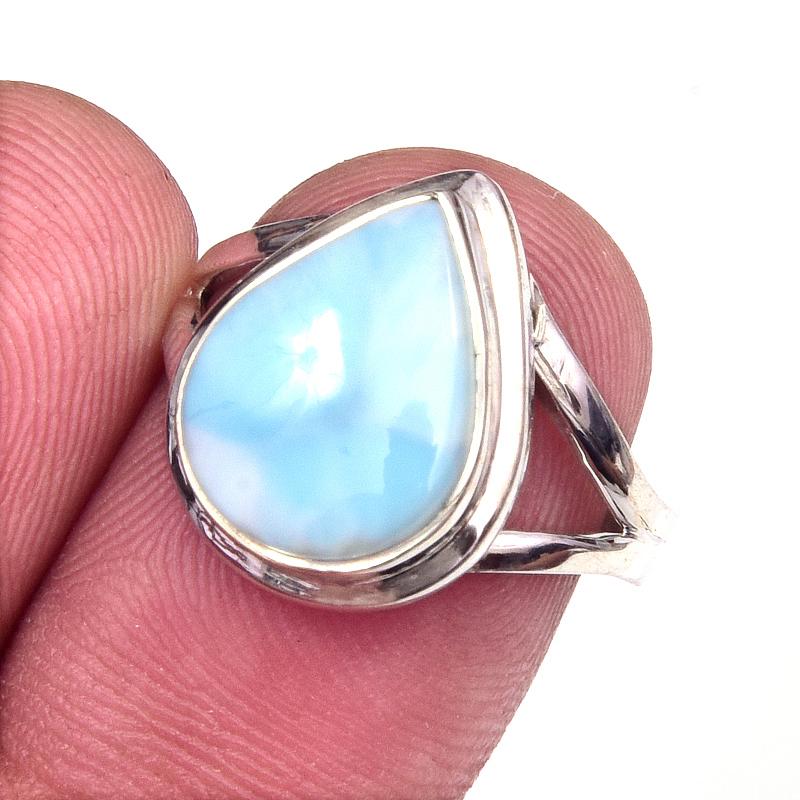 Natural Republic Larimar Gemstone 925 Solid Sterling Silver Gift Ring S.7 j9b30