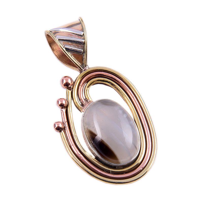 Подвеска из натурального ботсванского агата из цельного серебра 925 пробы в двух тонах 1,50'' i3r51