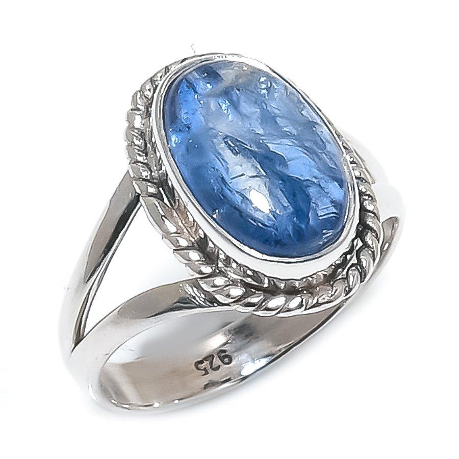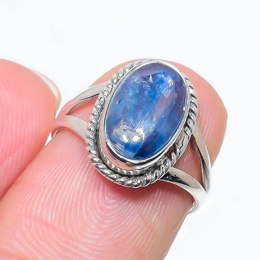 Подарочное кольцо из чистого серебра 925 пробы с натуральным кианитом ручной работы S.6 H1v54
