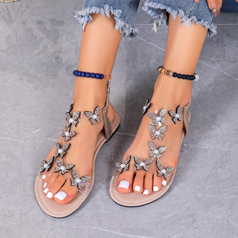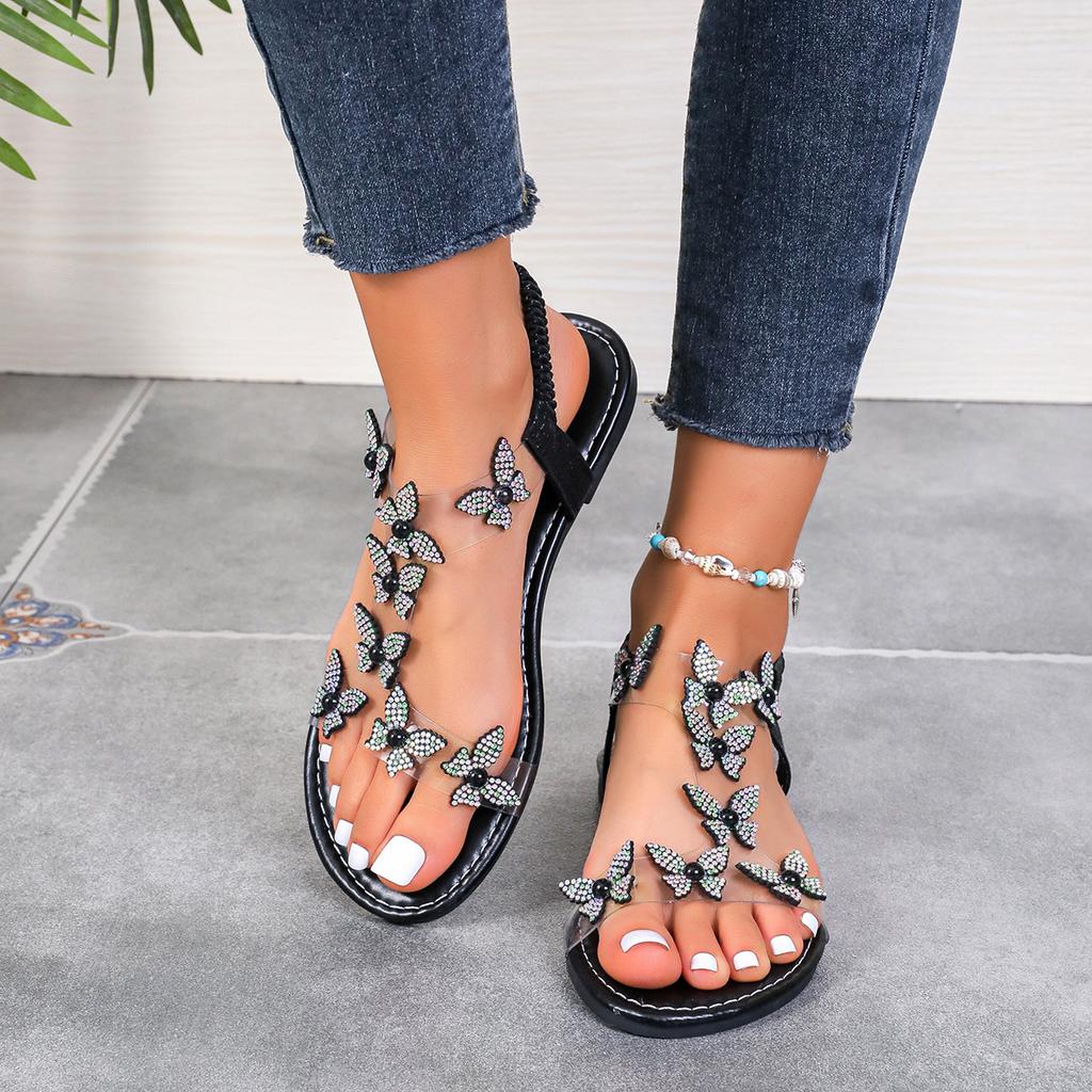 Женские босоножки на квадратном каблуке, летние женские босоножки высокого качества со стразами и бабочкой на высоком каблуке, модные женские сандалии с квадратной головкой