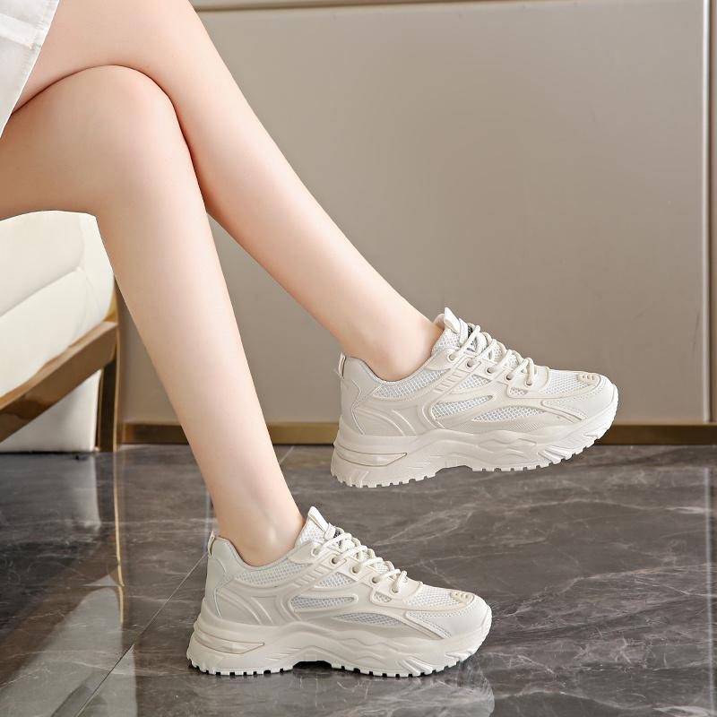 Весенне-летние повседневные модные новые дышащие однотонные кроссовки, удобные женские прогулочные туфли с круглым носком на толстой подошве