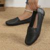 Женская обувь на плоской подошве с круглым носком, весенняя однотонная повседневная удобная уличная женская кожаная обувь без шнуровки, большой размер