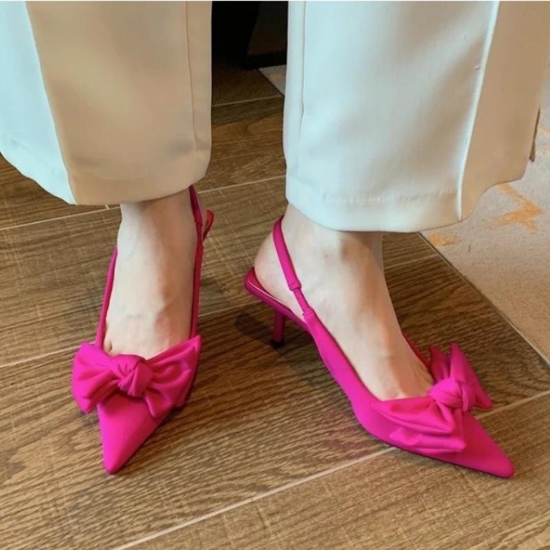 Женские туфли-лодочки, летние брендовые женские сандалии с открытой пяткой, модные женские элегантные модельные туфли-лодочки без шнуровки с острым носком и бантом — купить товар онлайн с бесплатной доставкой до всему миру!