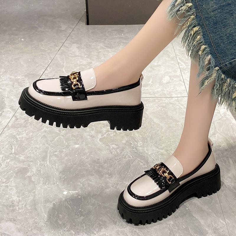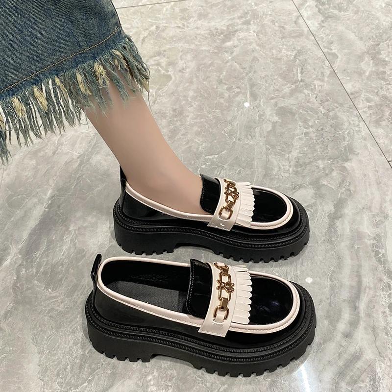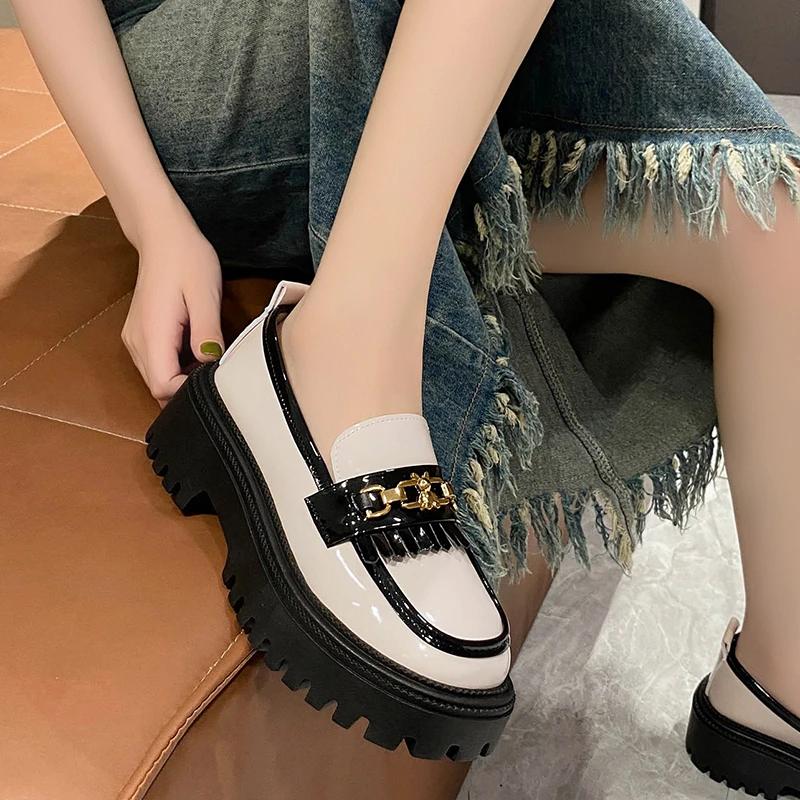 Модная женская обувь на платформе с металлическим декором, весенне-осенние новые стильные элегантные удобные лоферы соответствующего цвета