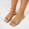 Летние модные новые повседневные однотонные сексуальные элегантные женские сандалии на плоской подошве с квадратным носком, пляжные удобные шлепанцы
