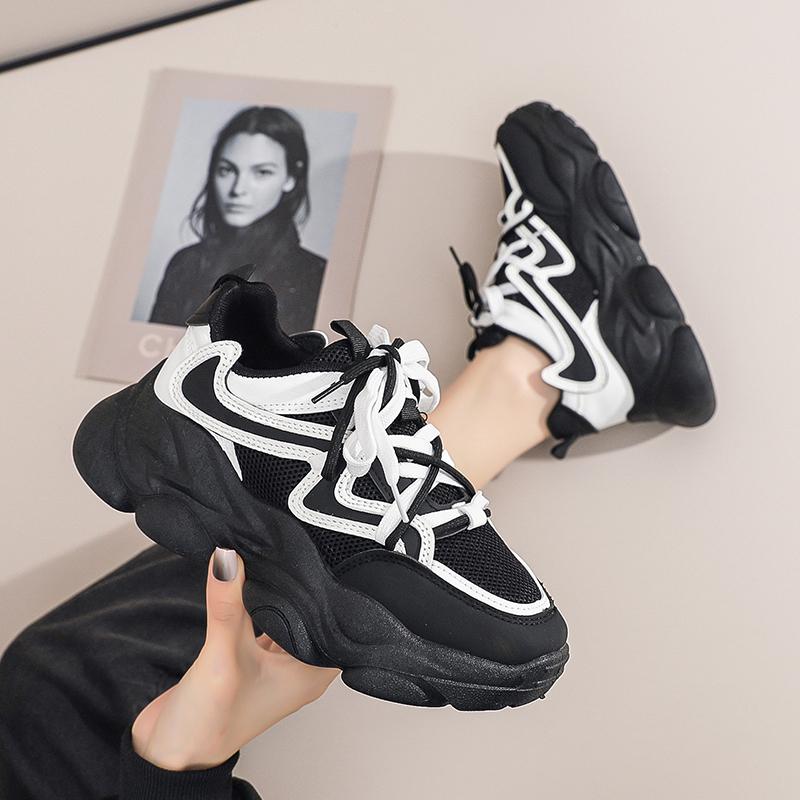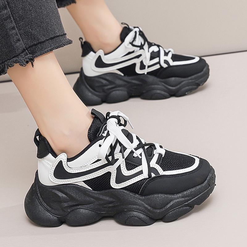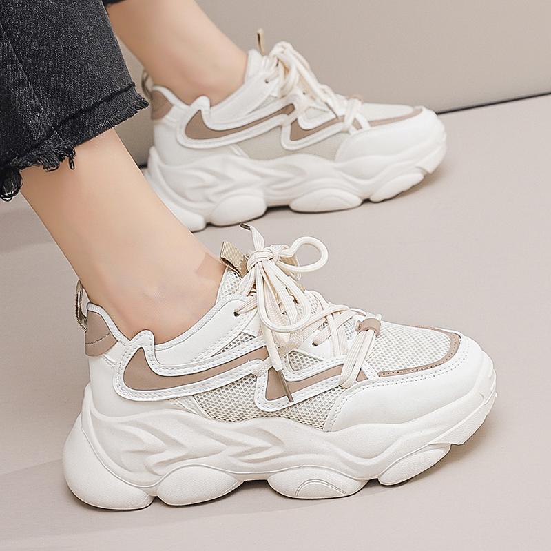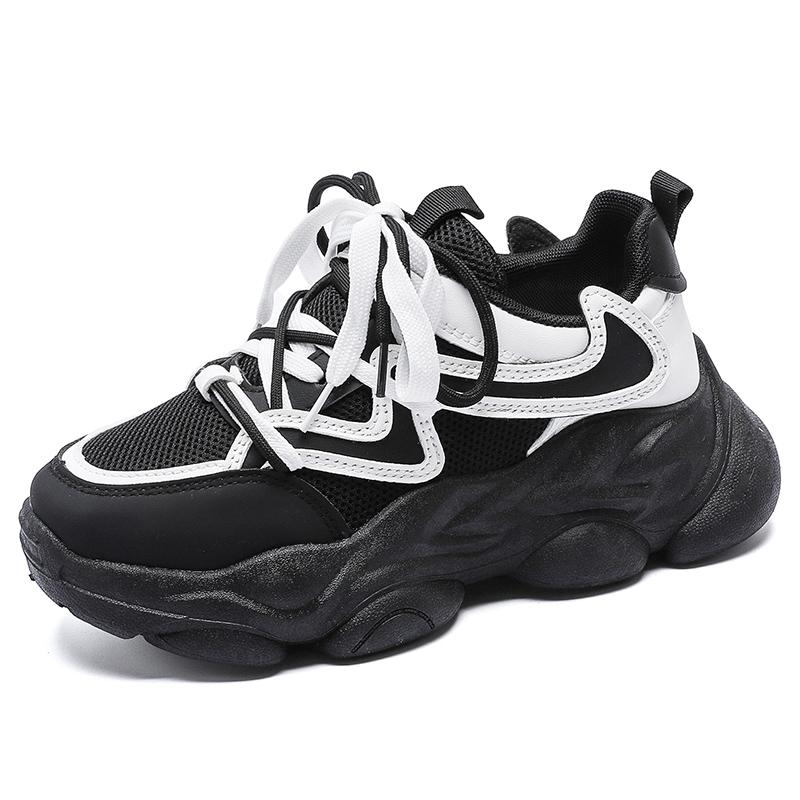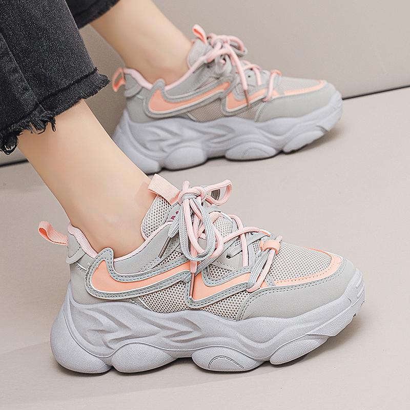 Новая модная женская спортивная обувь на платформе, весенняя повседневная женская вулканизированная обувь на массивной шнуровке с дышащей сеткой и платформой