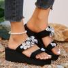 Летние женские тапочки на платформе, пляжные домашние тапочки с маленьким цветком и бриллиантами, однотонные износостойкие женские тапочки