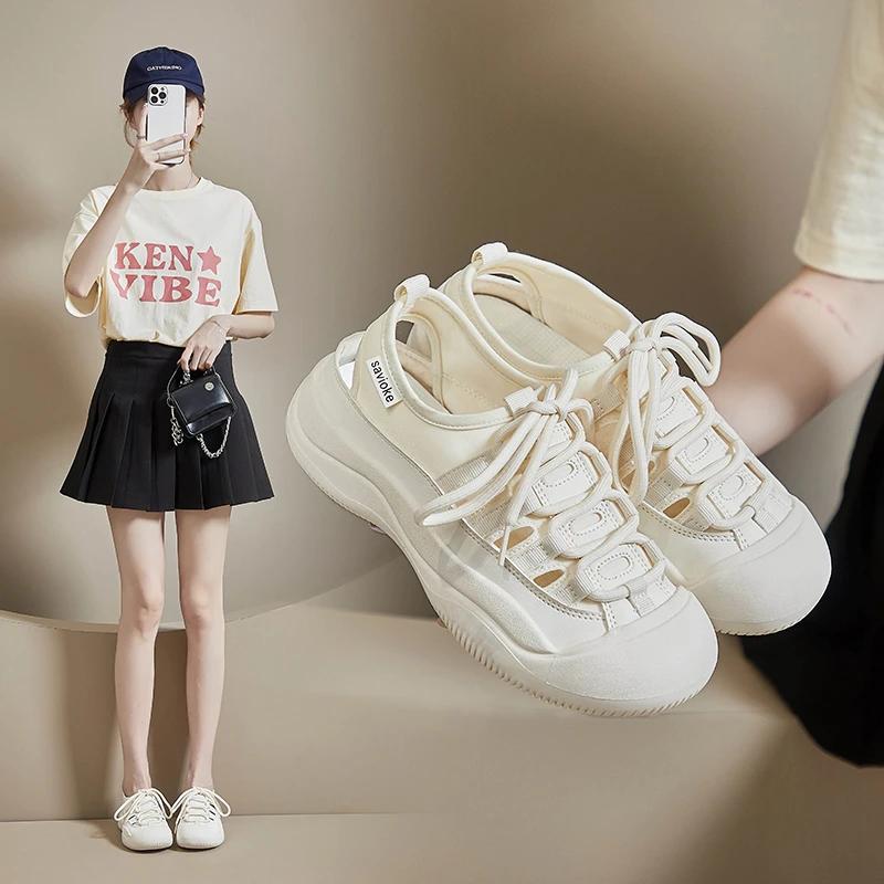 Летние женские уличные пляжные сандалии, легкие повседневные туфли без шнуровки, дышащие кроссовки на шнуровке