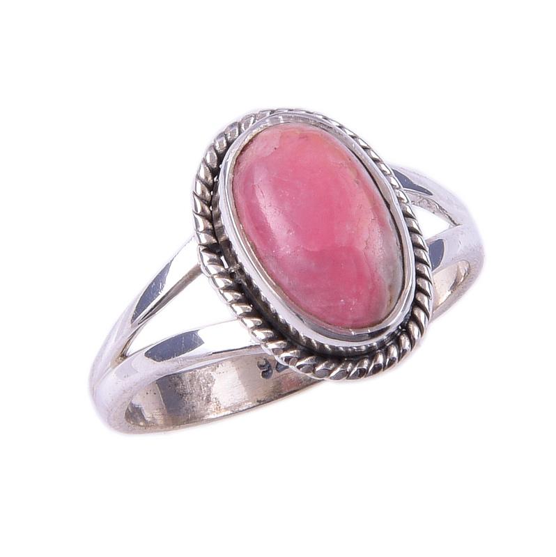 Кольцо из чистого серебра 925 пробы с натуральным родохрозитом ручной работы S.6 V1p71