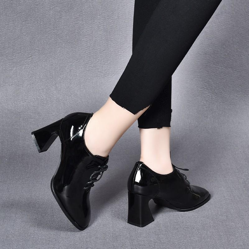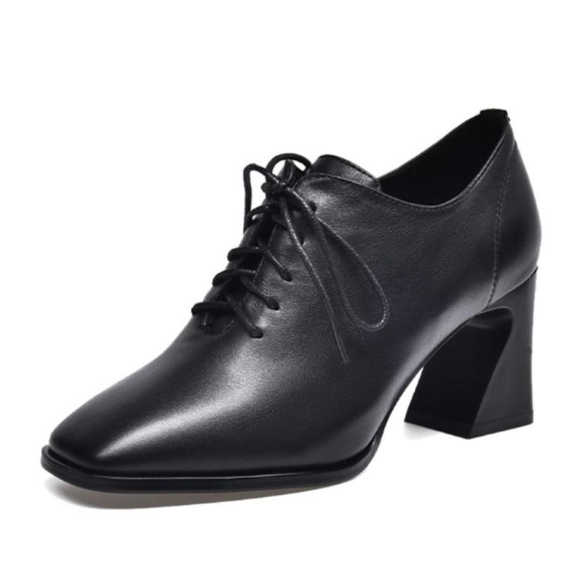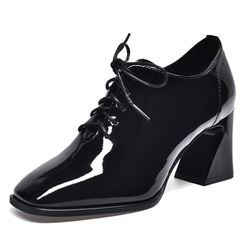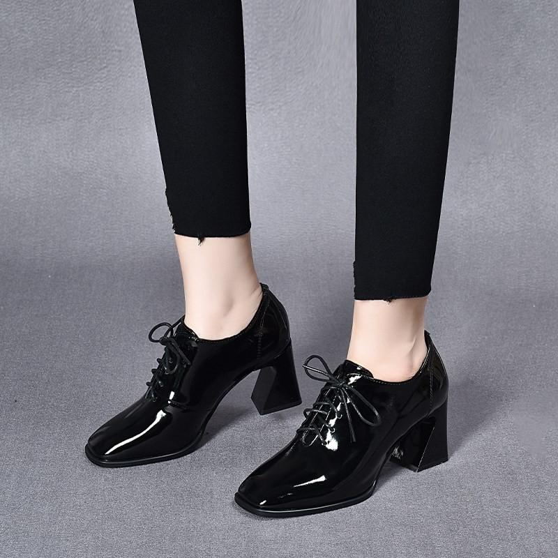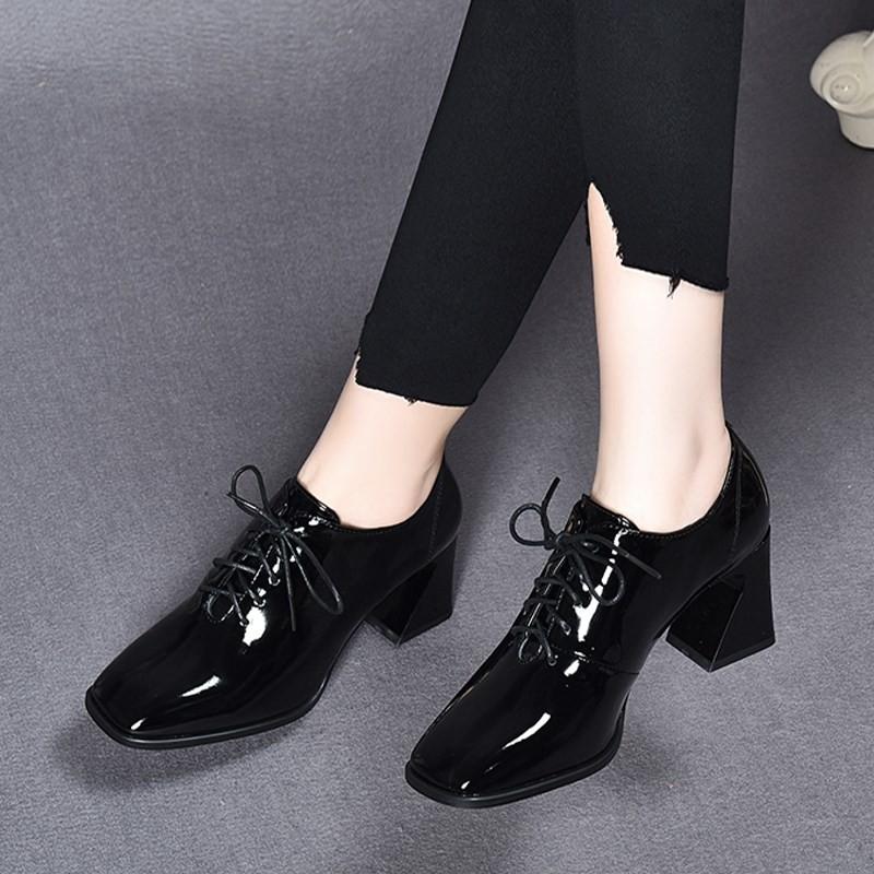 BCEBYL/Новые модные женские туфли на высоком каблуке, женские кожаные туфли на высоком каблуке со шнуровкой и квадратным каблуком, обувь для женщин, Zapatos De Tacon Mujer