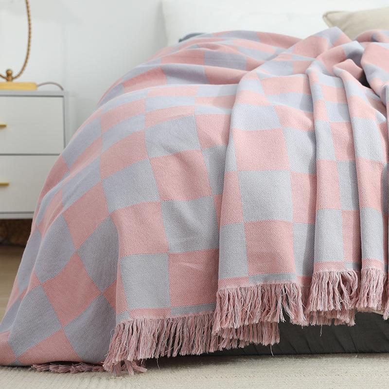 Минималистское клетчатое полотенце-одеяло для дивана-кровати, всесезонные одеяла из чистого хлопка, универсальное современное украшение для дивана для дома
