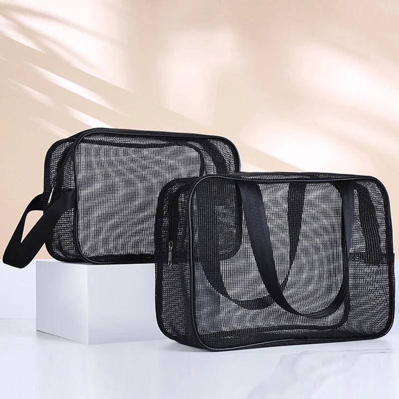 Сетчатая пляжная сумка для мужчин и женщин, портативная ручная дорожная косметичка для хранения, черный карман для фитнеса, органайзер для ванны