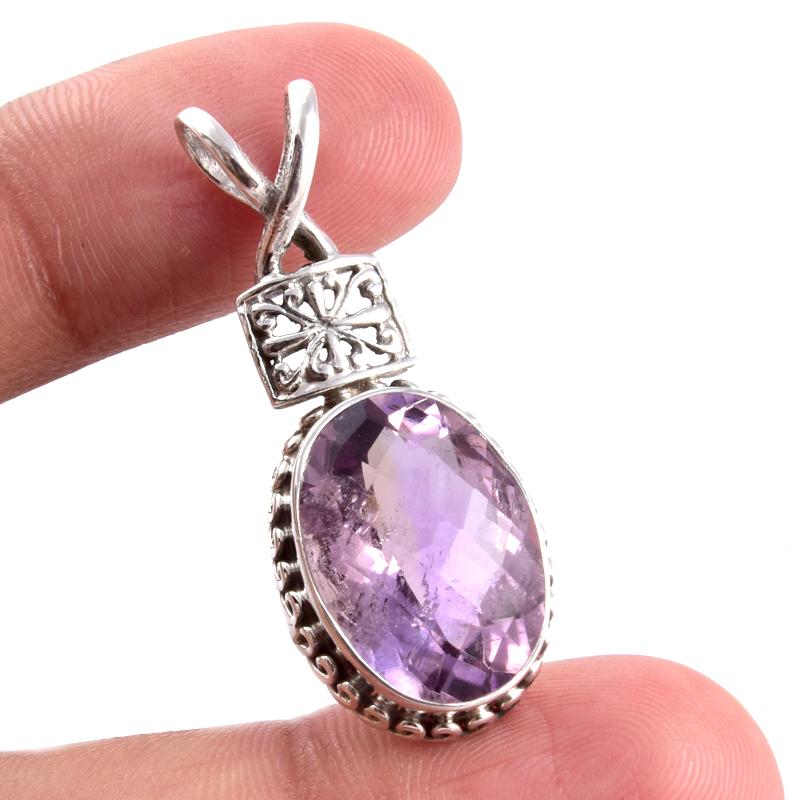 Подвеска из стерлингового серебра 925 пробы с натуральным аметистом 1,4'' n6W70