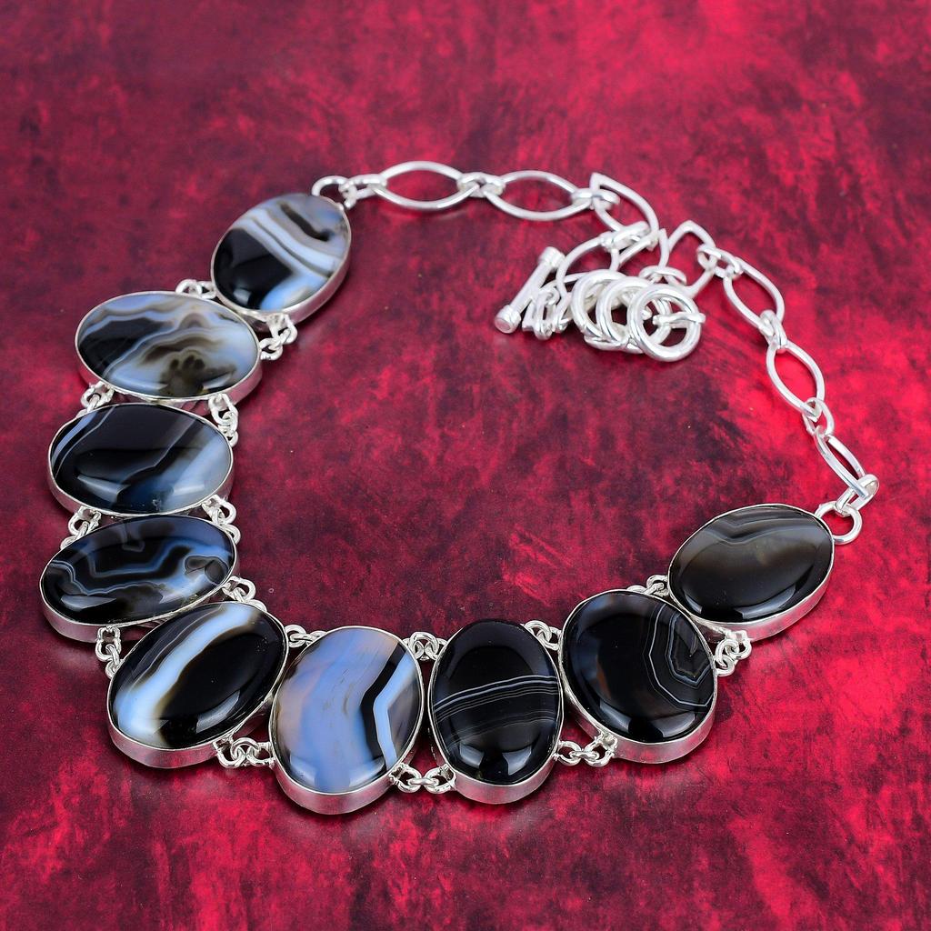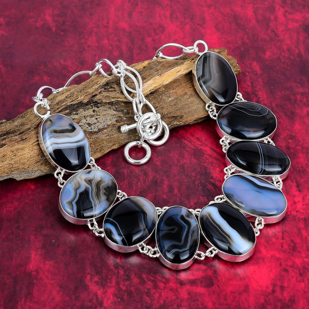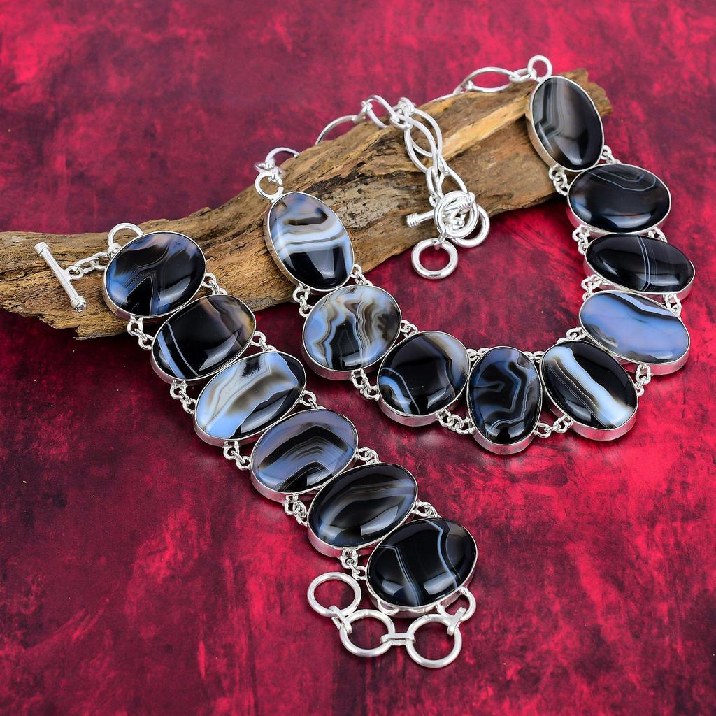 Комплект украшений из твердого серебра 925 пробы с агатом, великолепное ожерелье и браслет ручной работы для нее, ювелирные изделия из драгоценных камней